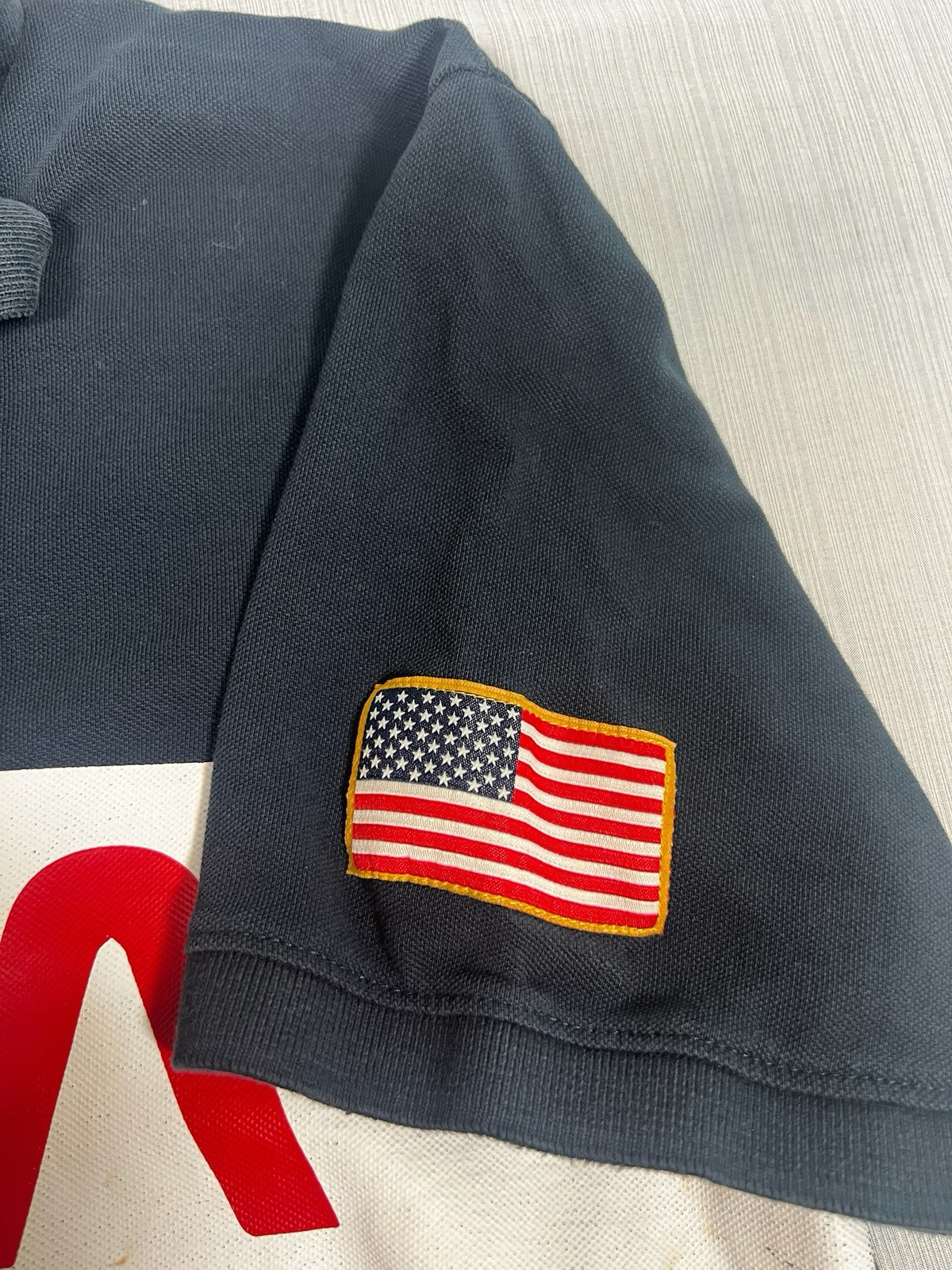 NASA Polo Shirt Men's Small Black SS Pique American Flag H M L.O.G.G. A10