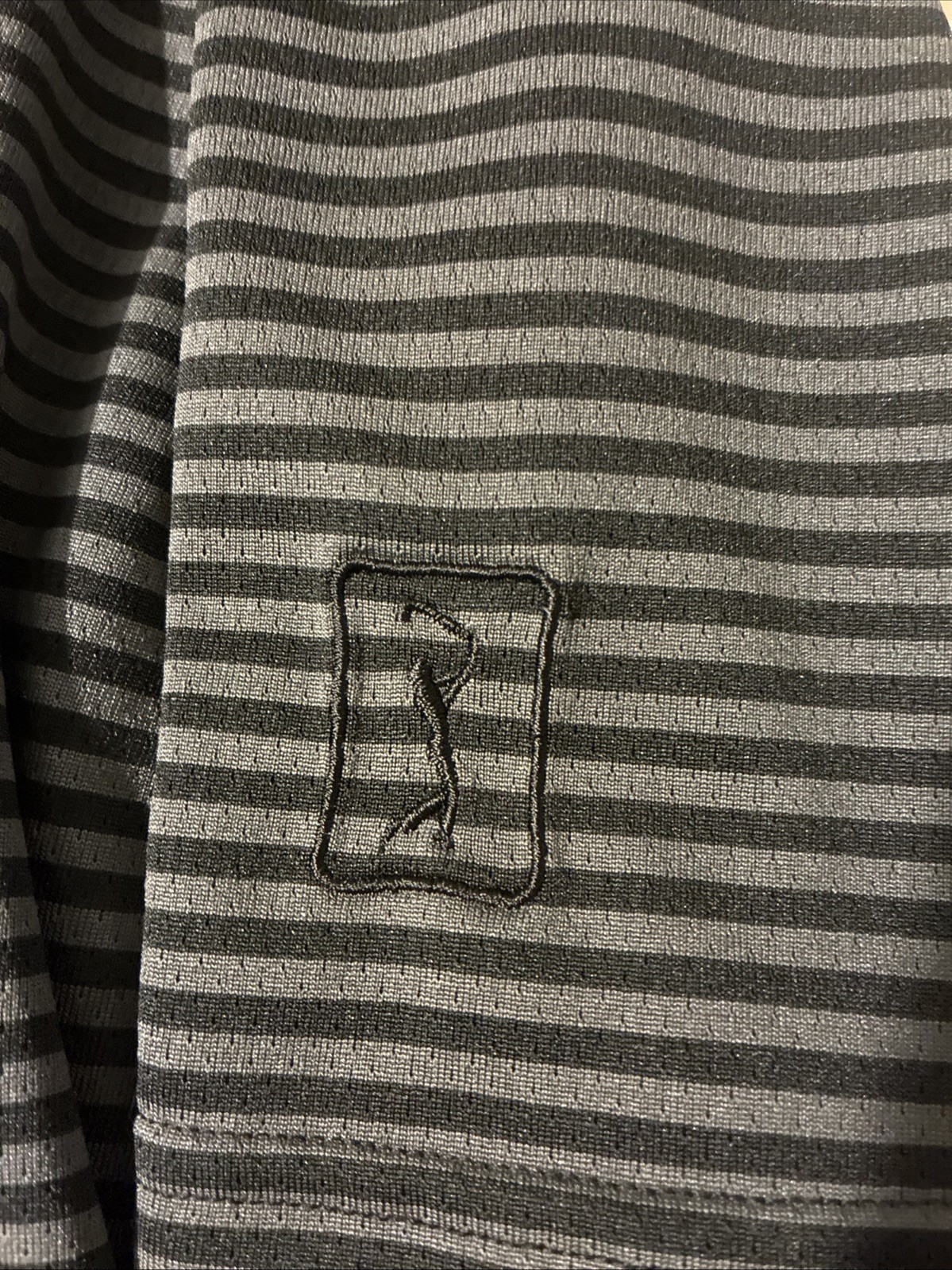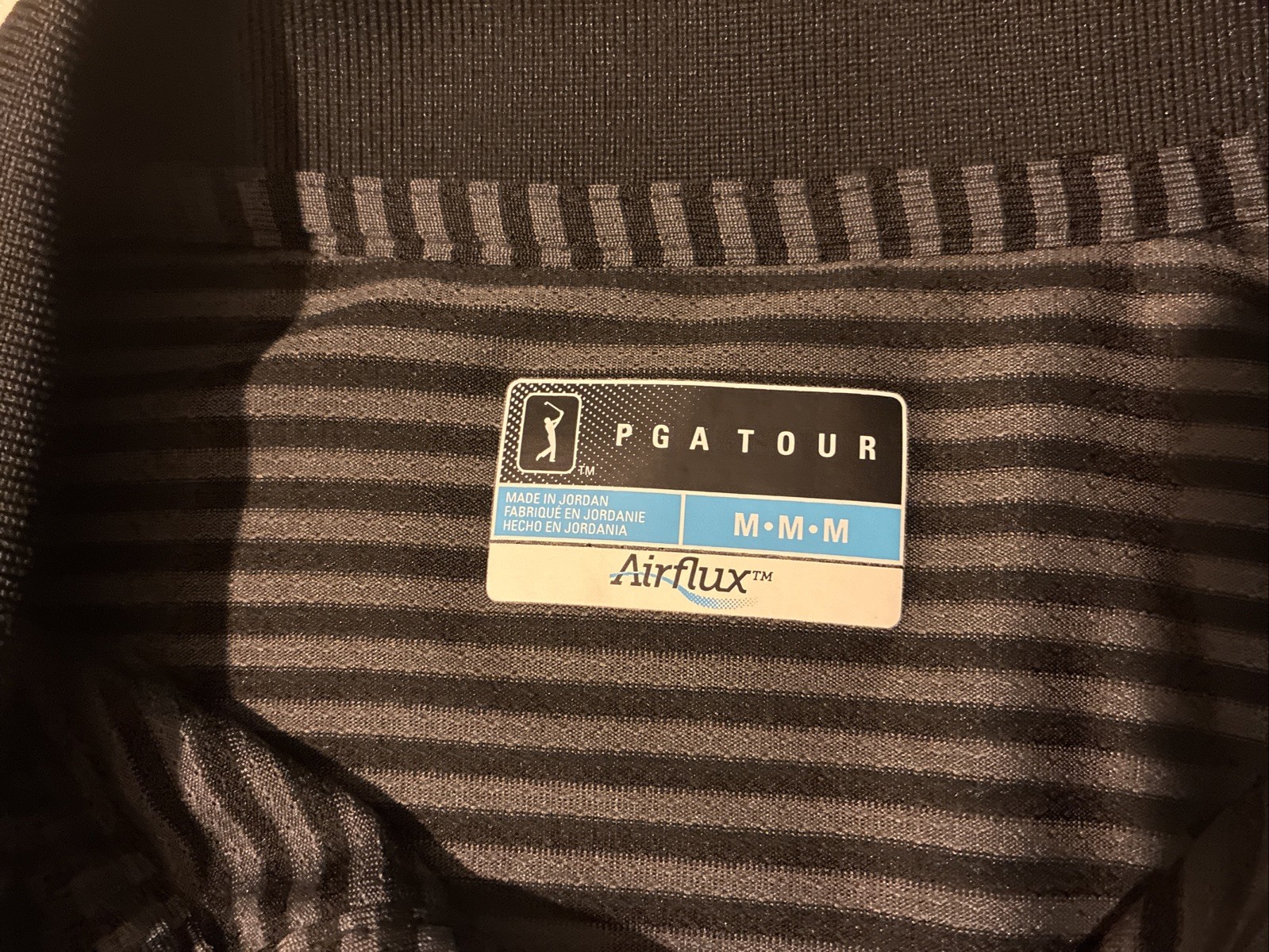 Men Airflux Golf Polo Shirt PGA Tour Black/Grey Logo Performance Athletic EUC
