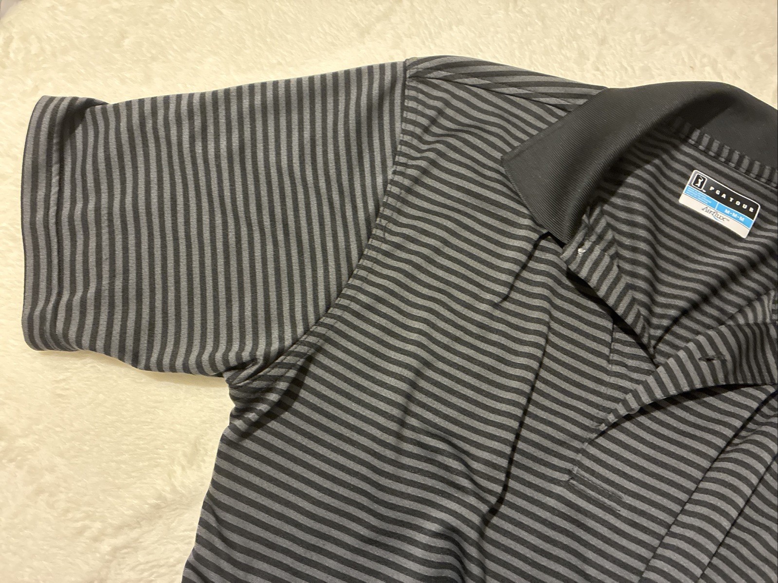 как выглядит Men Airflux Golf Polo Shirt PGA Tour Black/Grey Logo Performance Athletic EUC фото