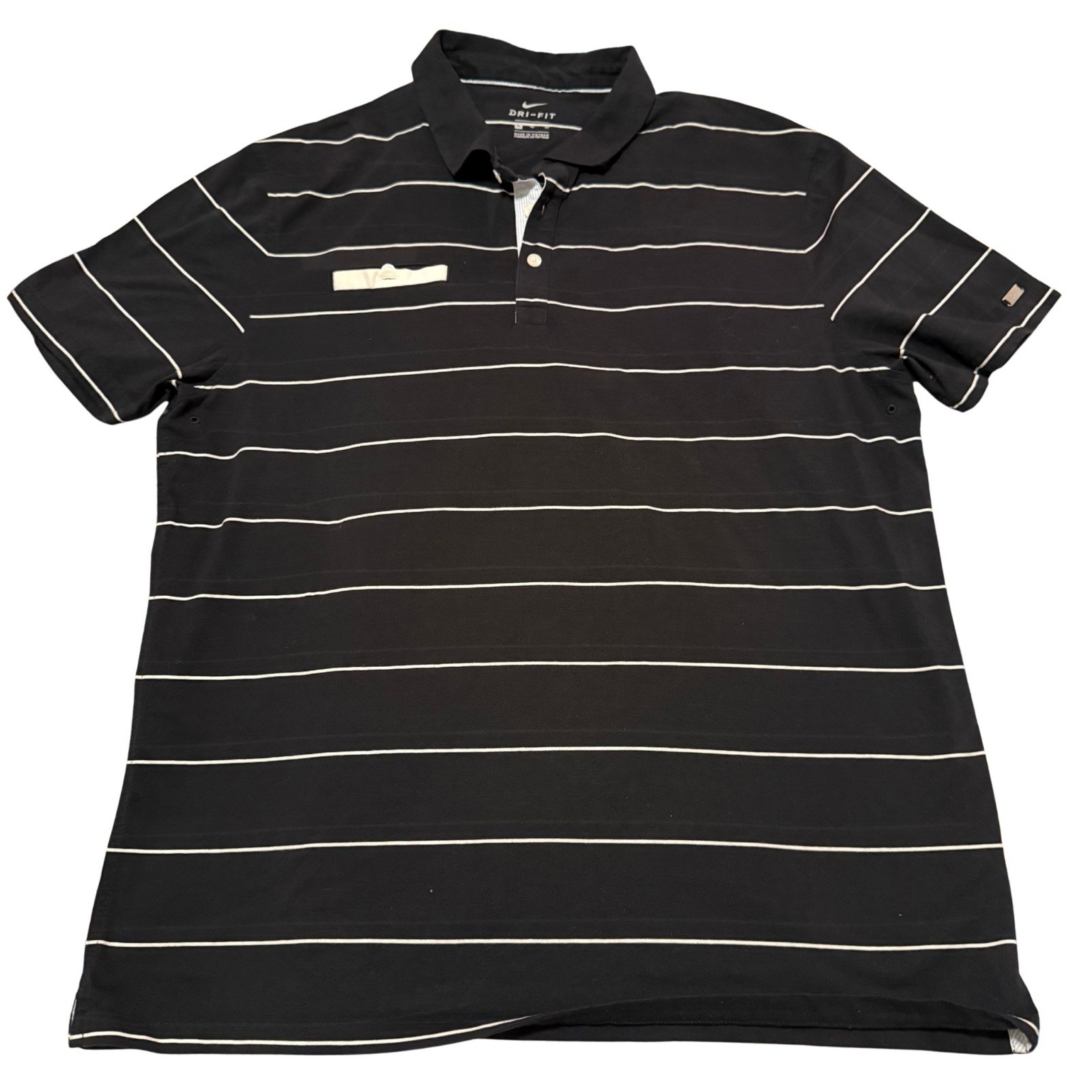 Nike Dri-Fit Black White Striped Polo Shirt XLarge Right Pocket