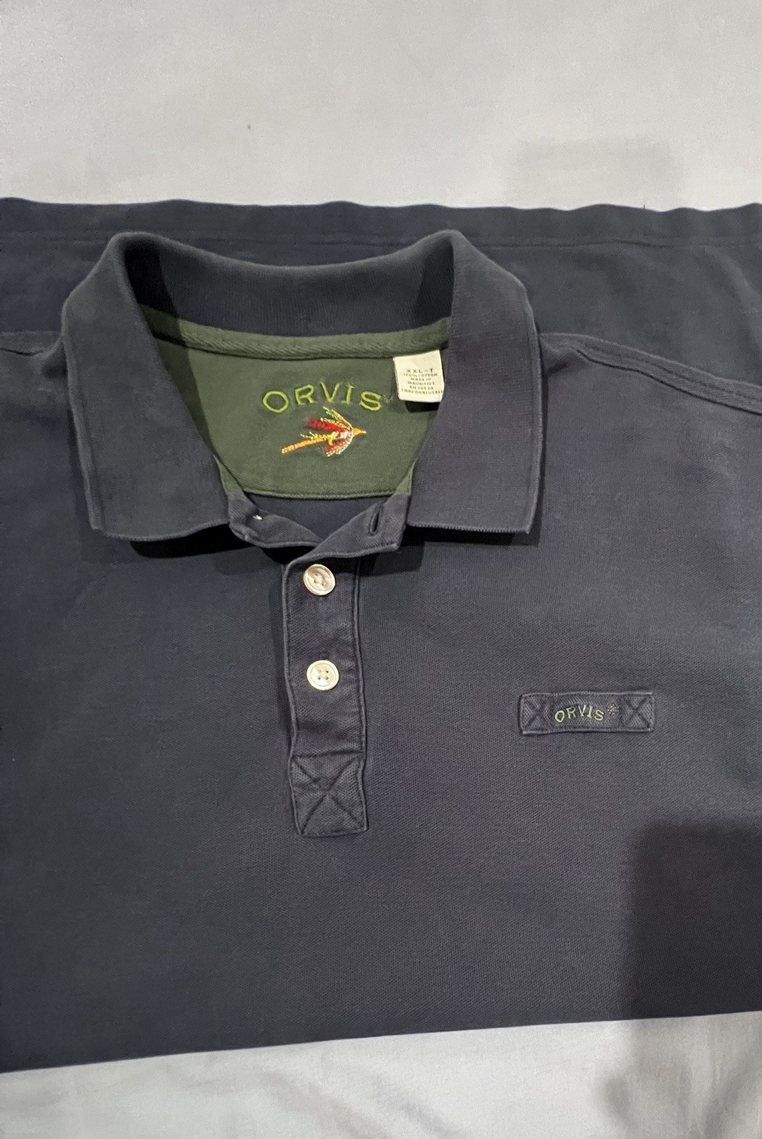 как выглядит Orvis Mens XXLT Navy Polo Shirt 100 Cotton Short Sleeve Button Front фото