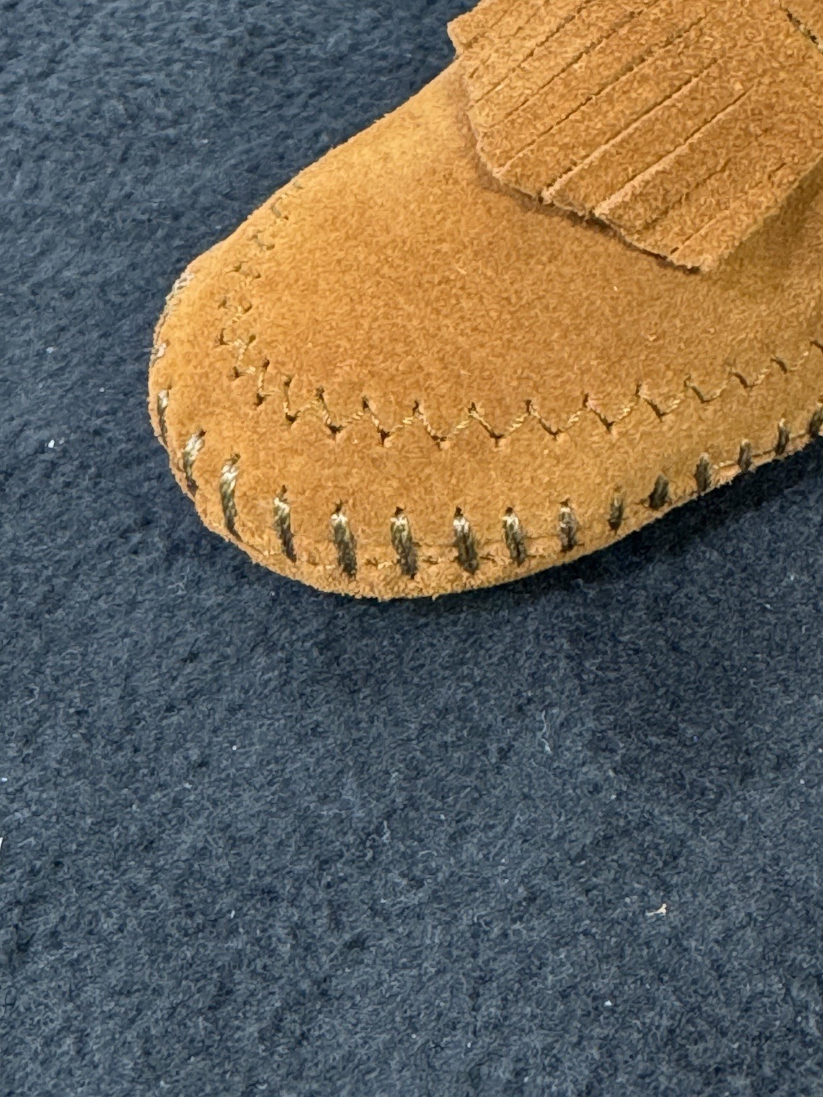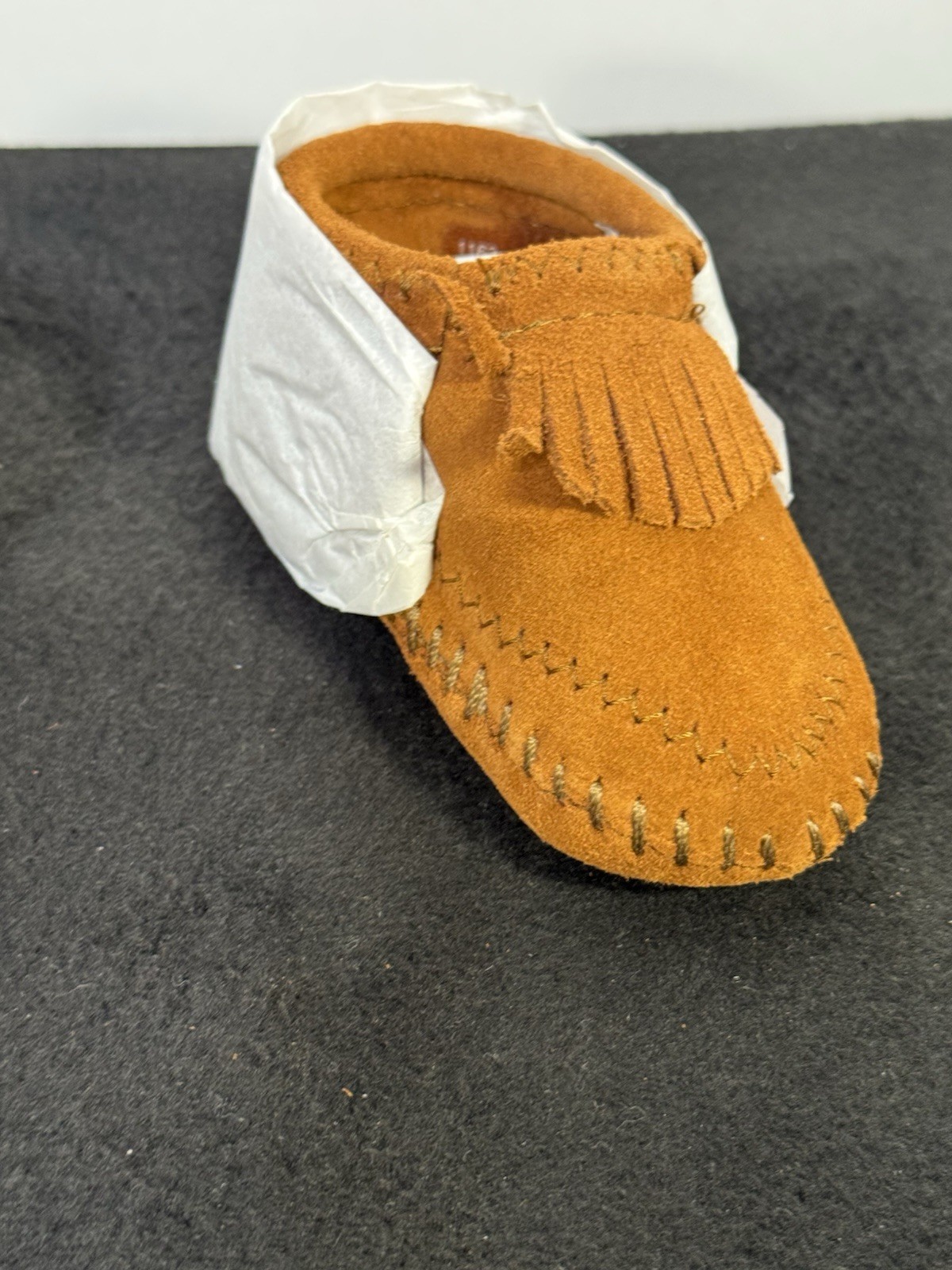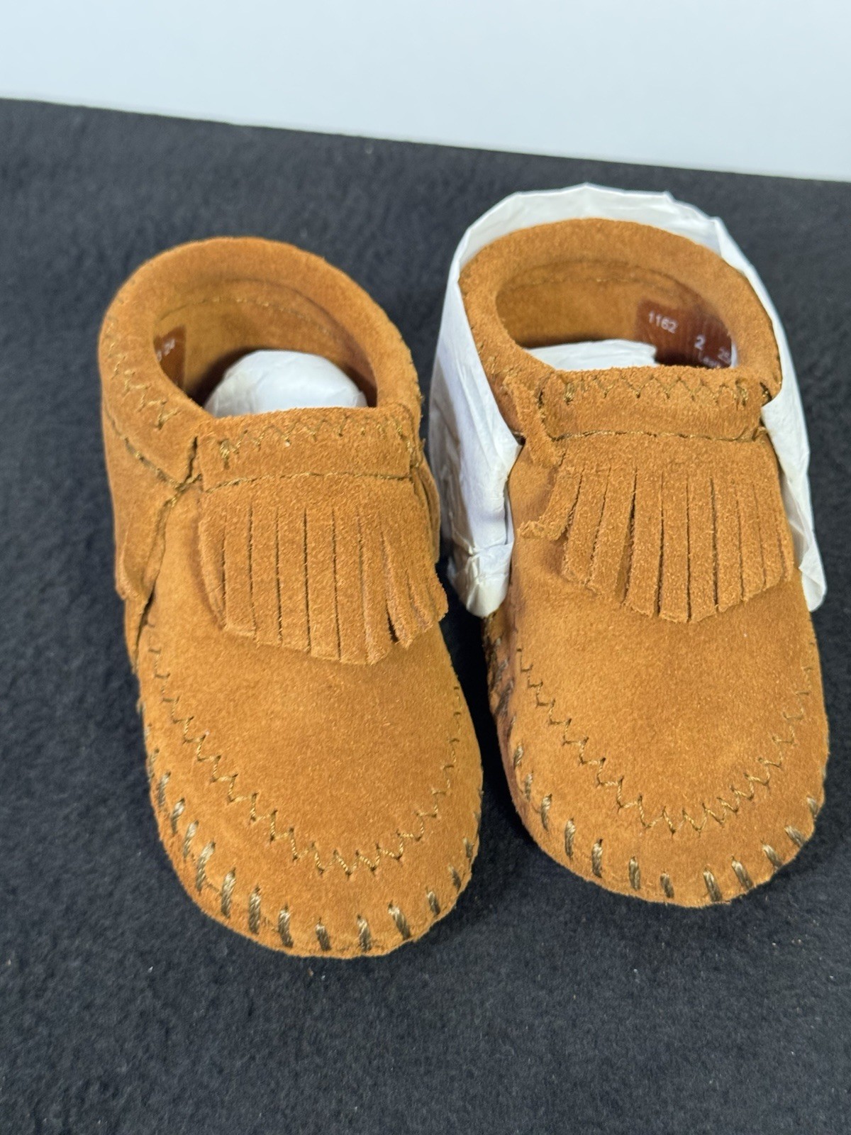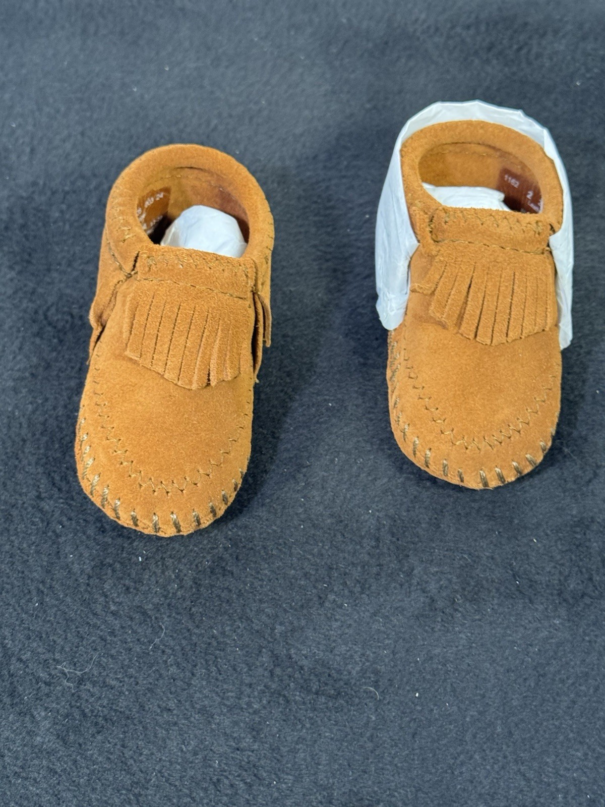 как выглядит NEW Minnetonka Infant Size 2 Fringe Bootie Moccasins With Tie Closure фото