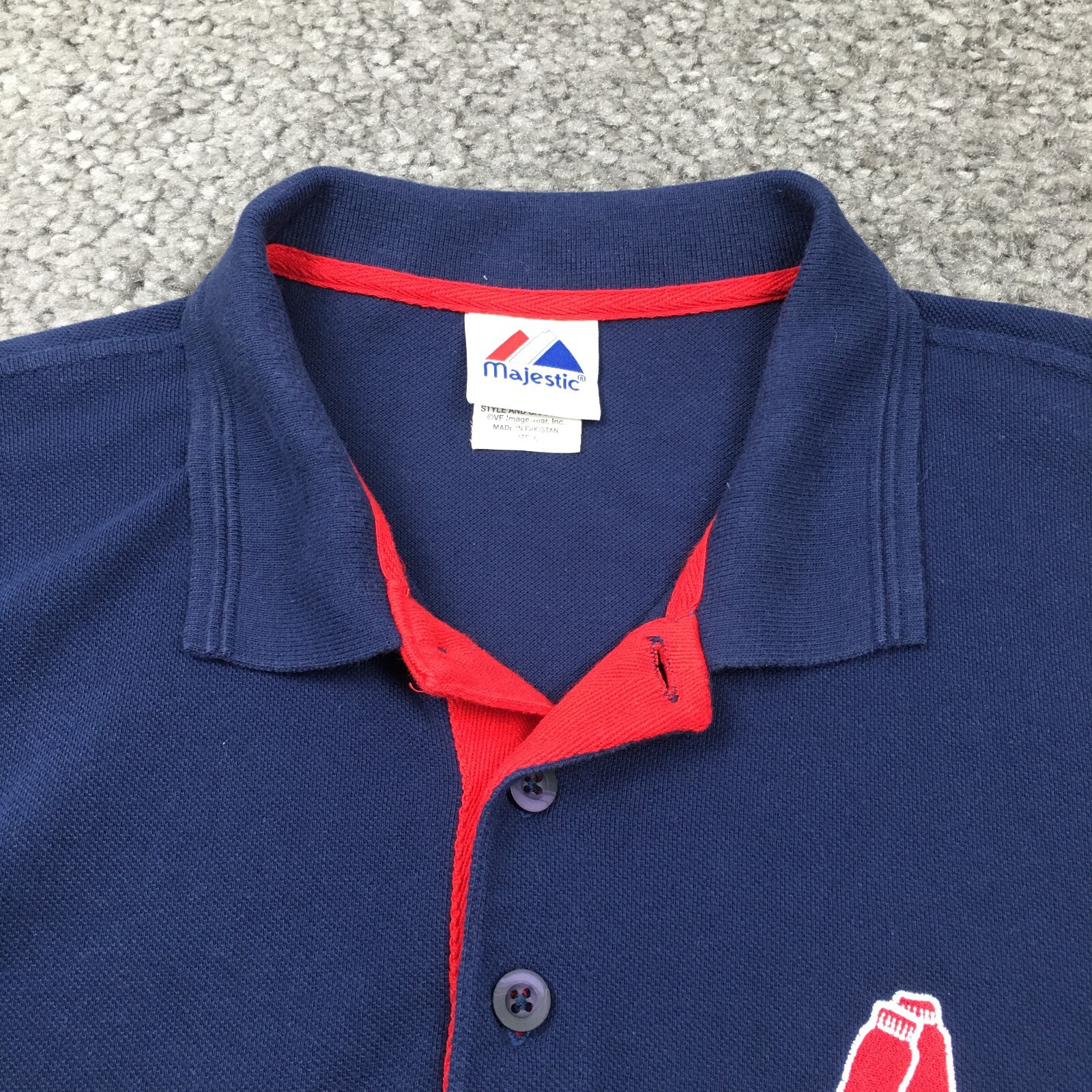 VTG Boston Red Sox MLB Majestic Mens Polo Shirt Sz L Blue Short Sleeve