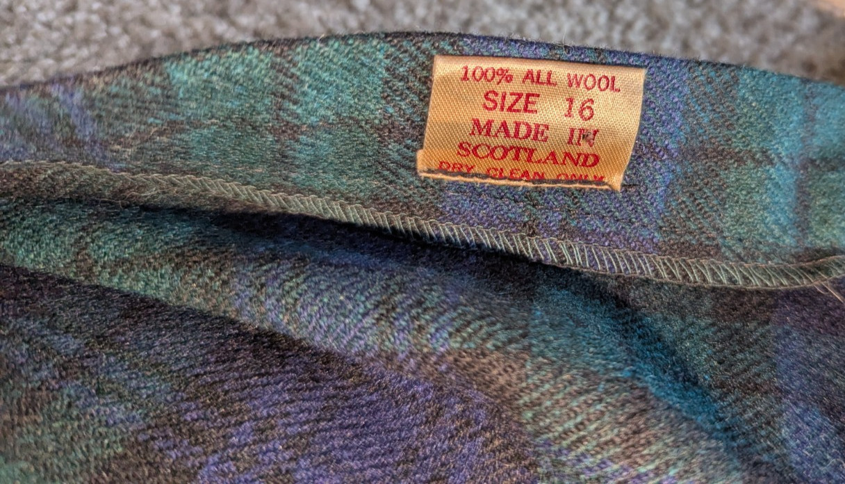 Vtg Scottish Kilt Blue Black Tartan 100 Wool Plaid Skirt Edinburgh Size 16