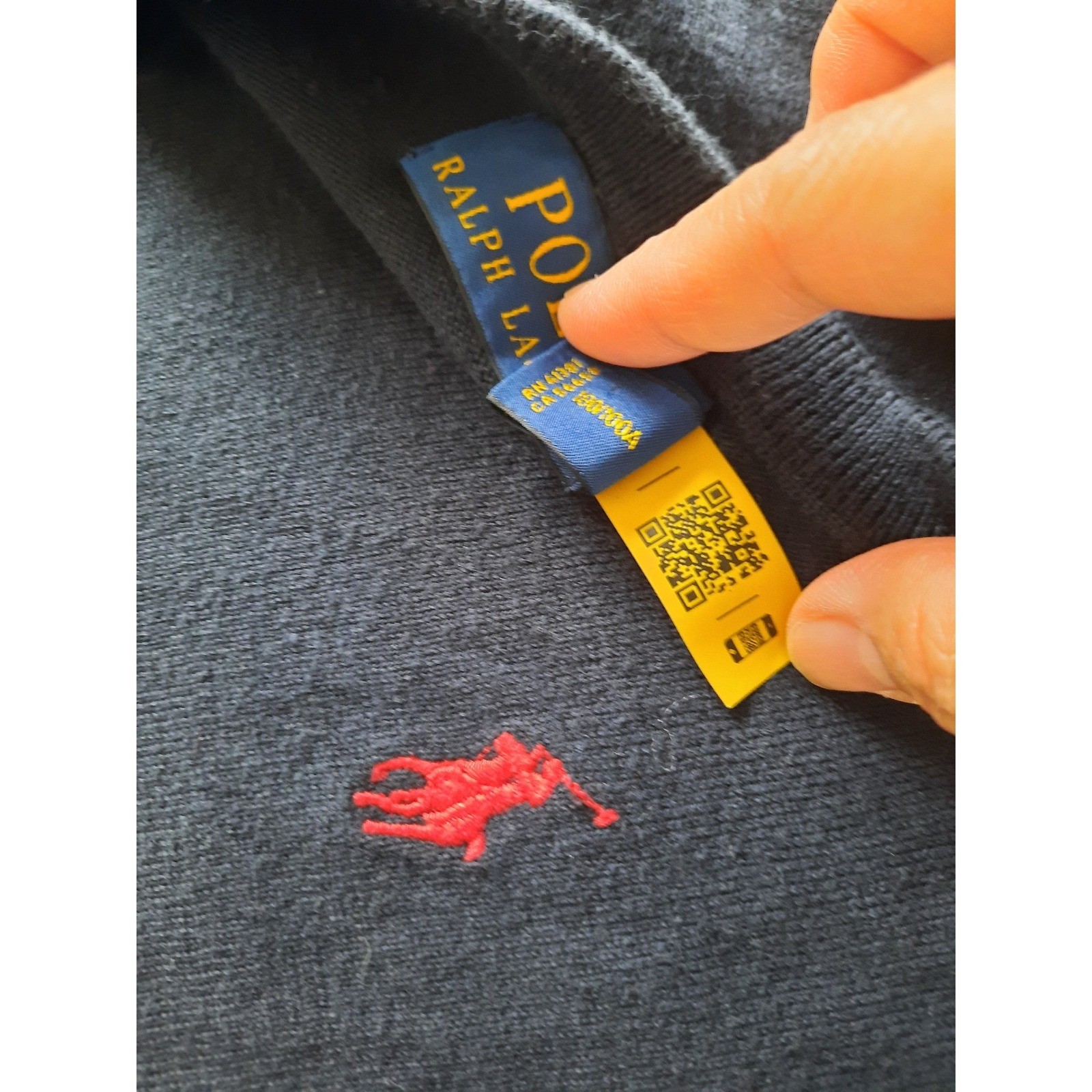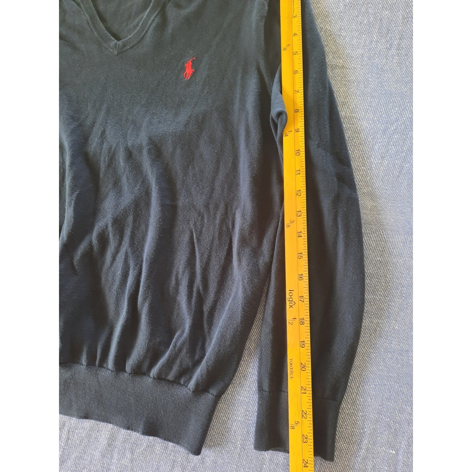 как выглядит Polo Ralph Lauren Mens Navy Blue Cotton V-Neck Sweater Red Pony Logo Large фото