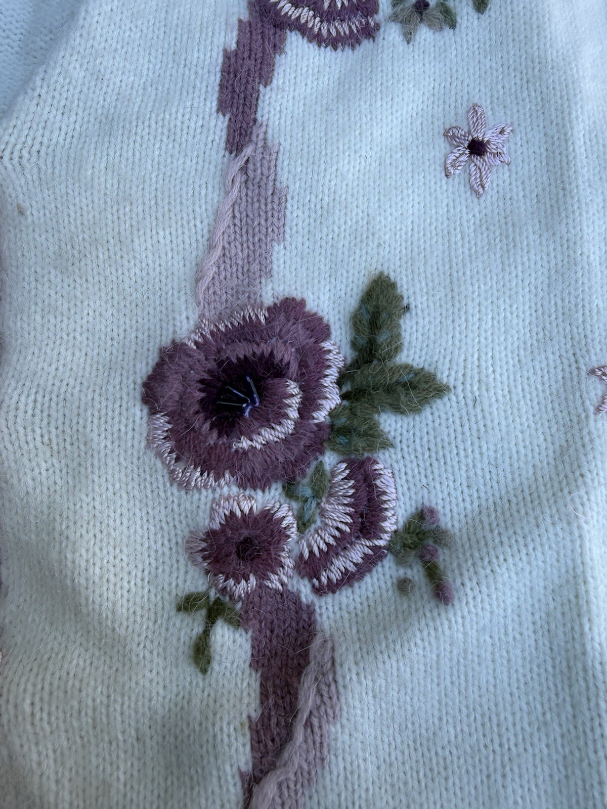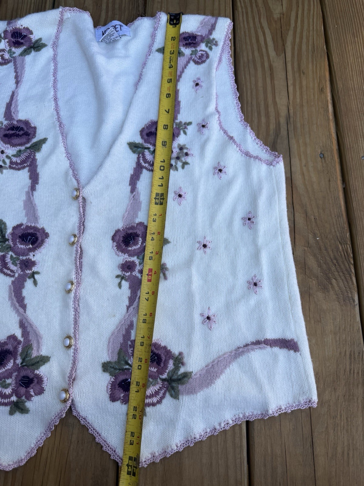 Vintage Koret Purple Floral Embroidered Women s Acrylic Vest Size Medium Cottage