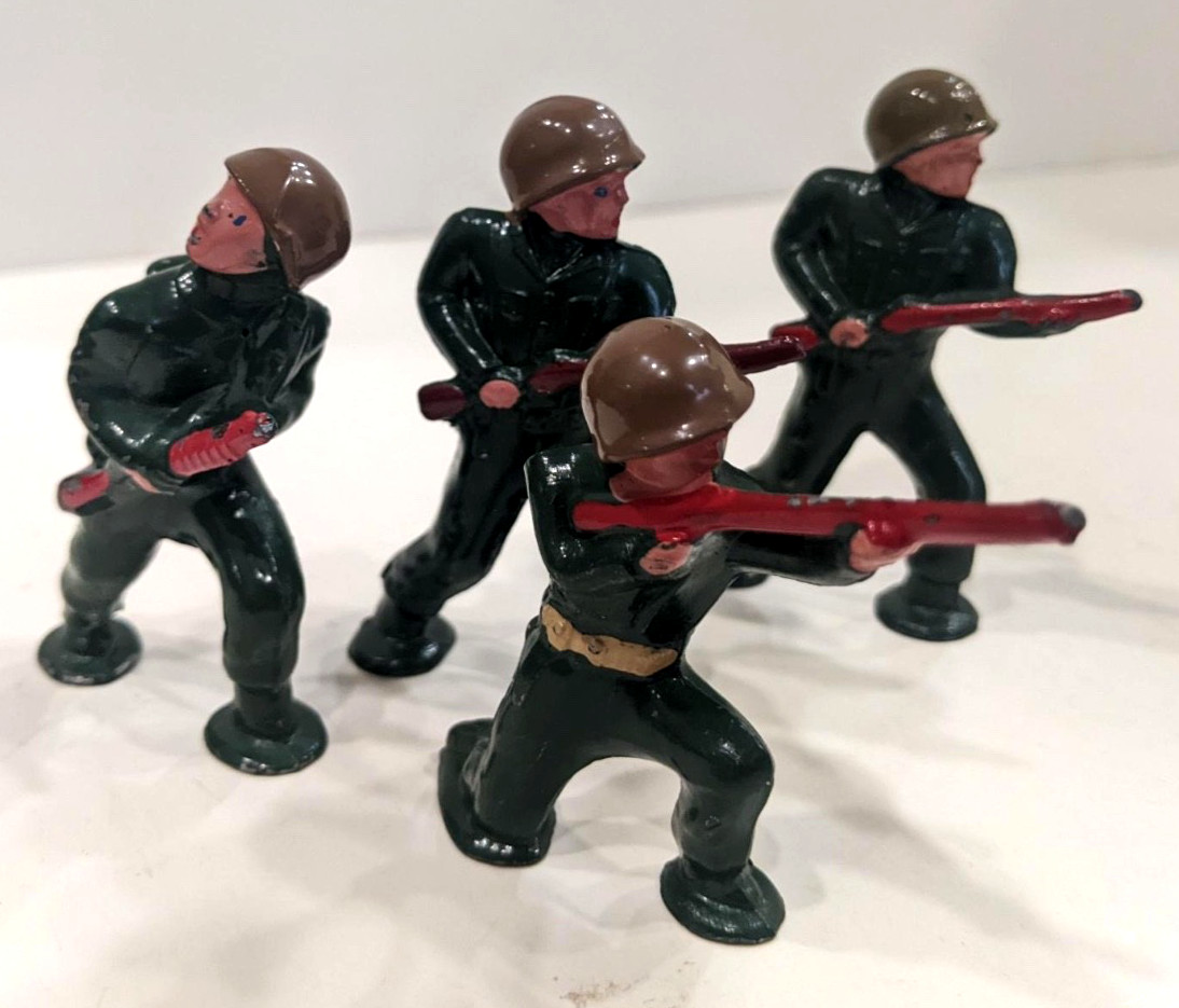Lot of 4 Barclay Pod Foot Soldiers, dark green uniforms, excellent original