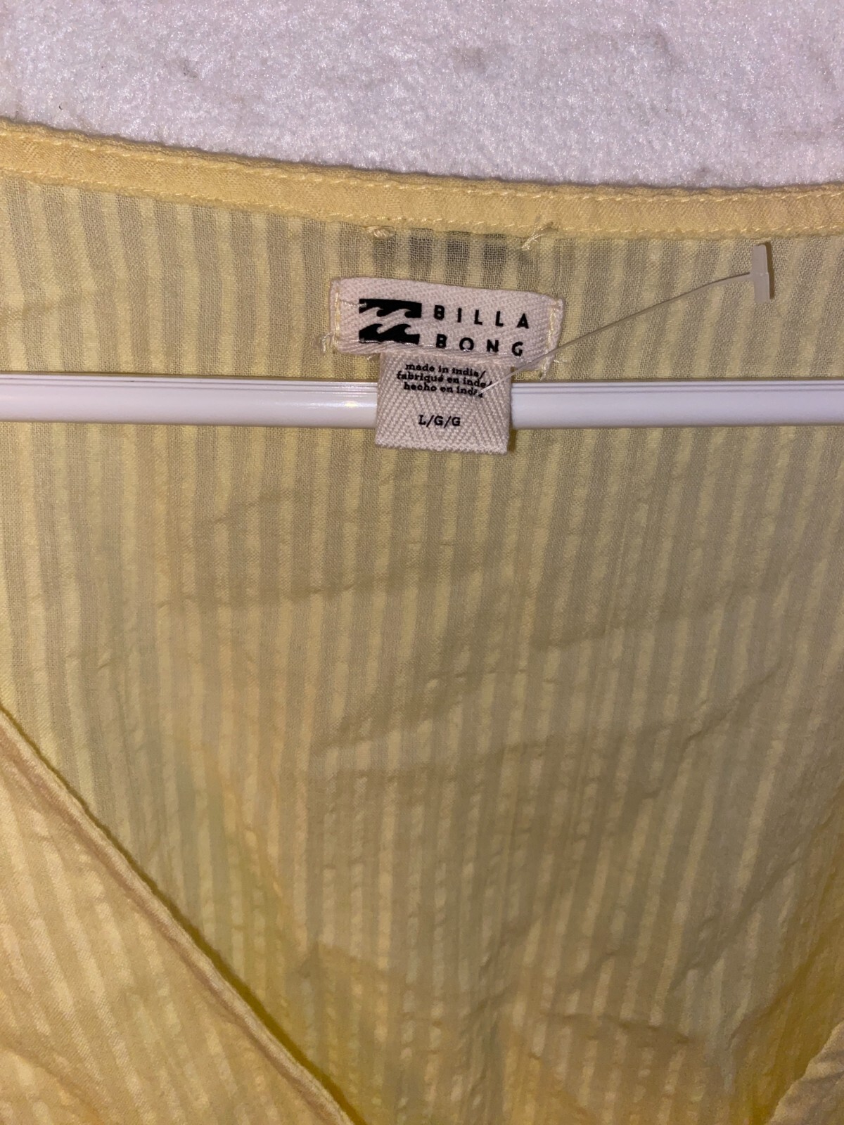 как выглядит Billabong Womens sz L Sun Valley Button Front Seersucker Romper Sunbeam NWT фото