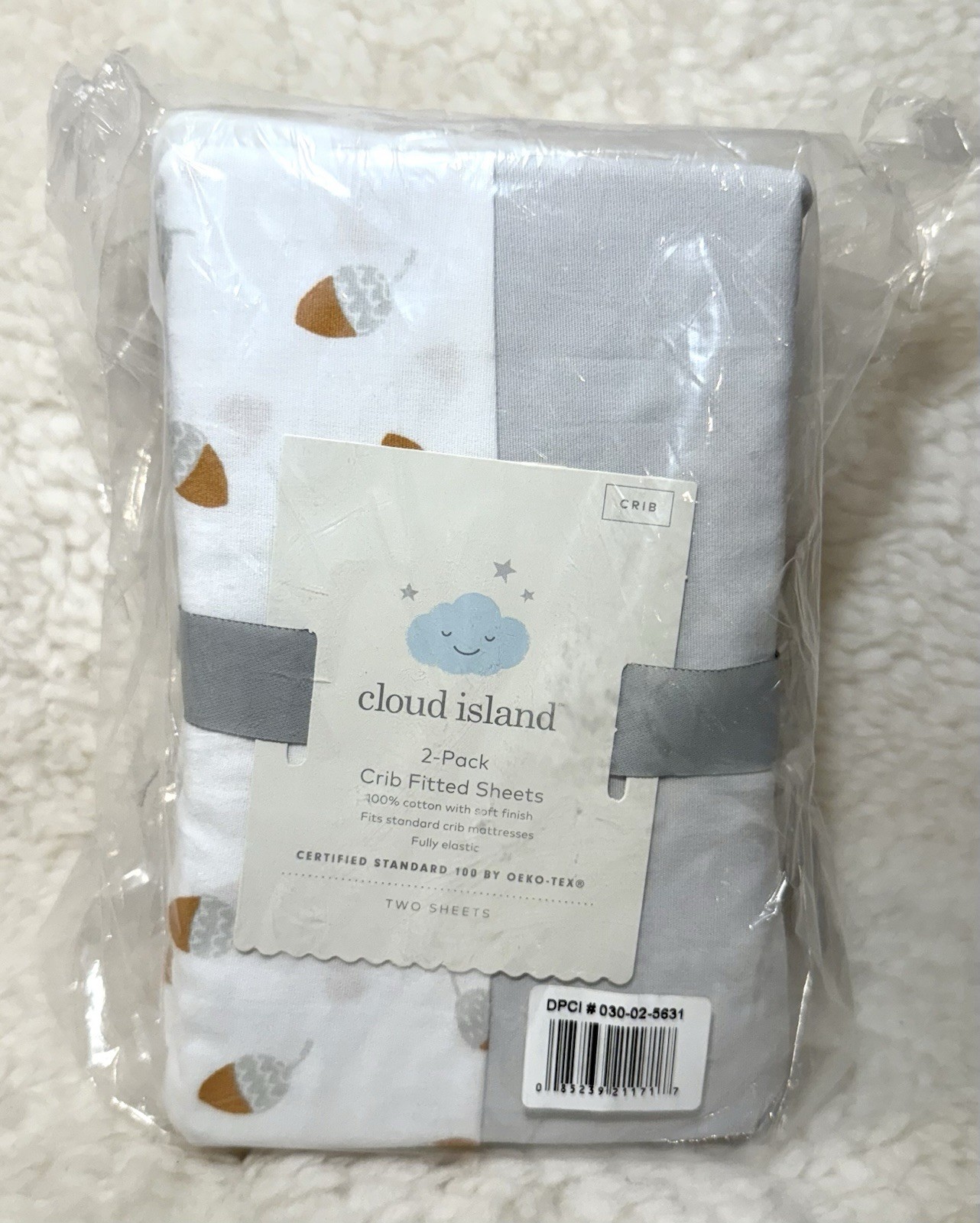 2-Pack Fitted Crib Sheets Acorns Print Cloud Island NEW