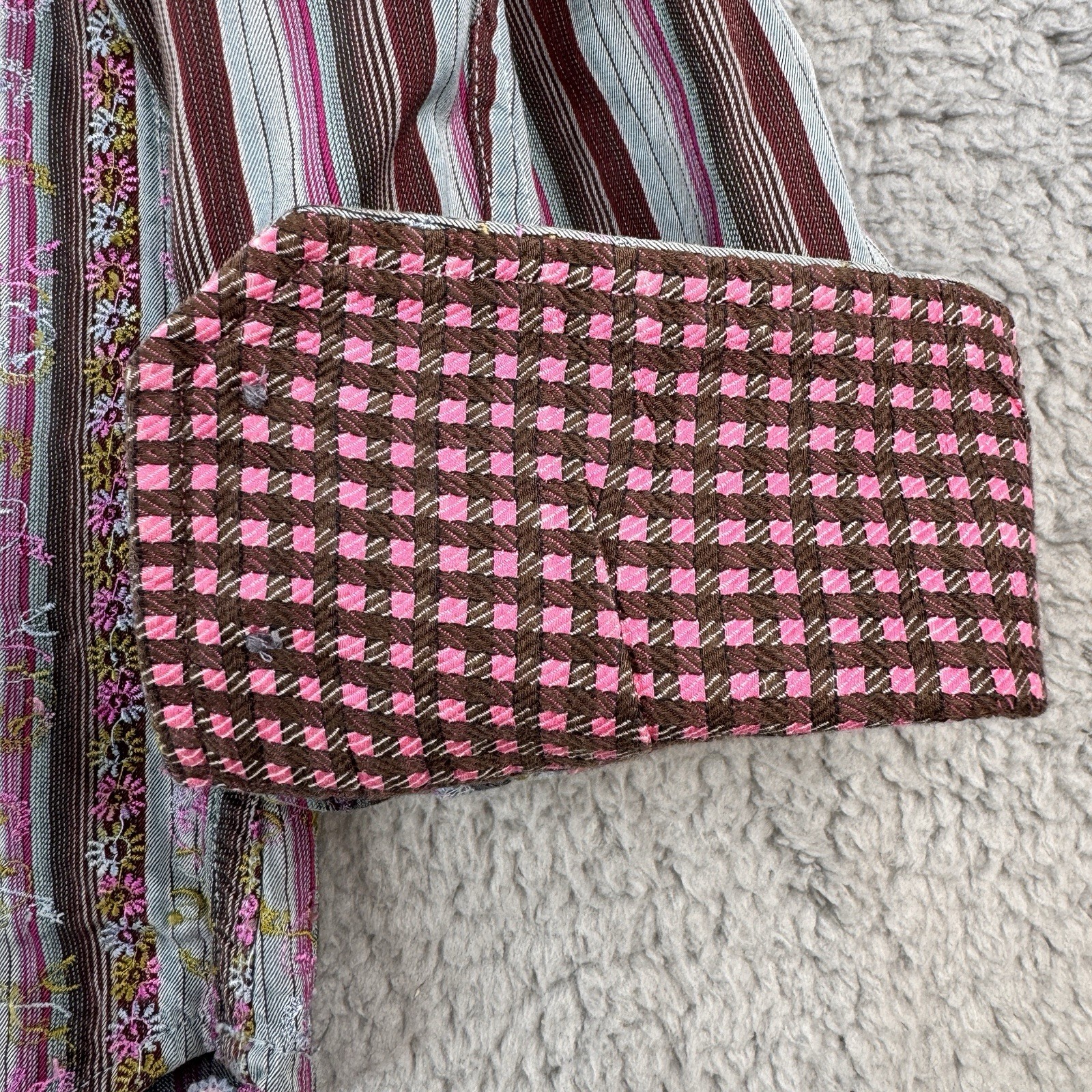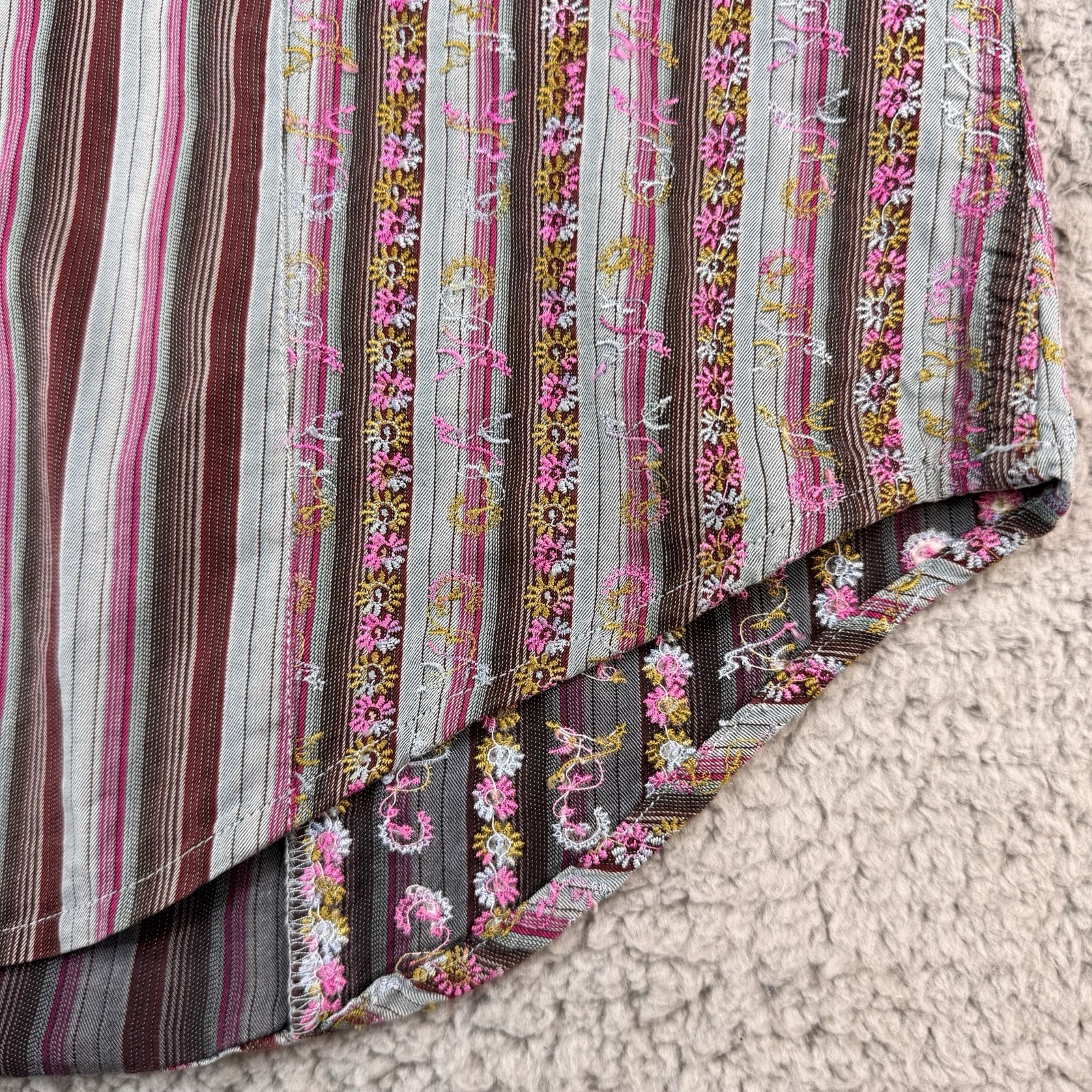 Robert Graham Shirt Men s M Multicolor Stripe Floral Embroidered Flip Cuff