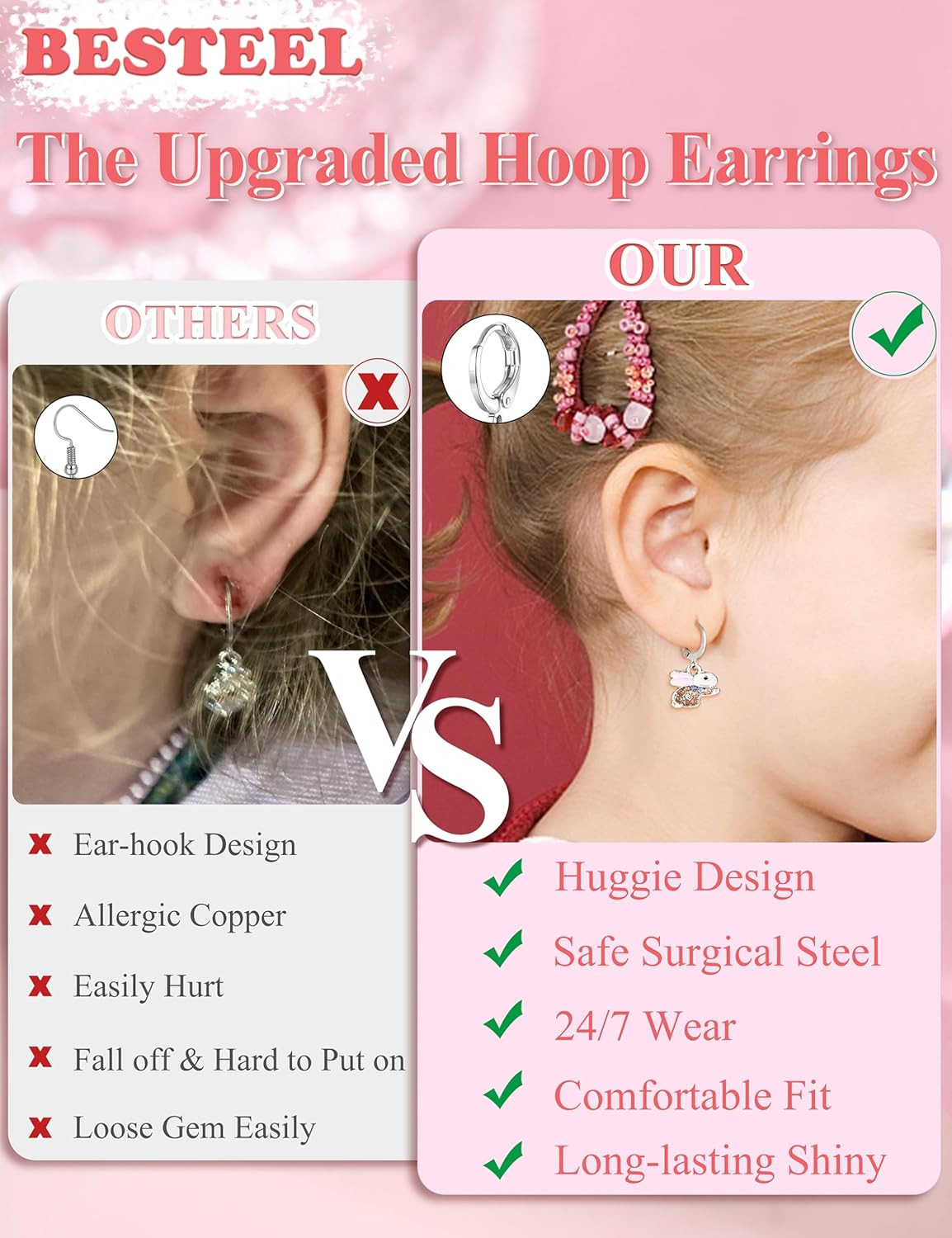 16 Pairs Hypoallergenic Earrings for Girls Women Sensitive Ears Cute Surgical St