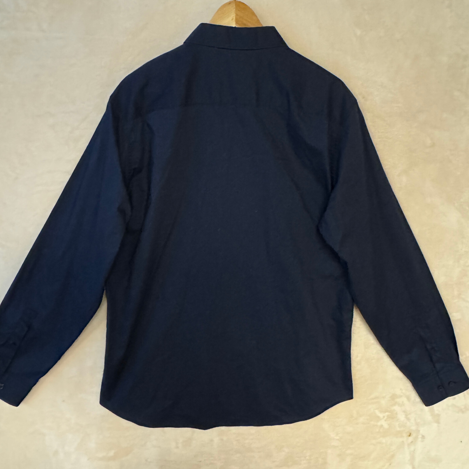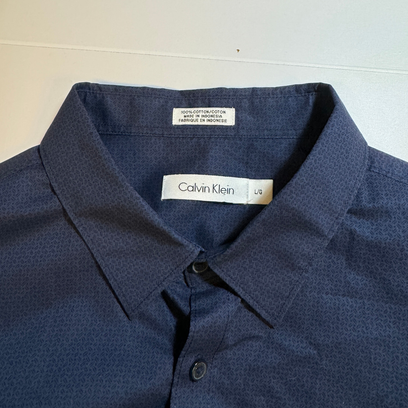 Calvin Klein Men's Size L Solid Blue Cotton Long Sleeve Casual Shirt