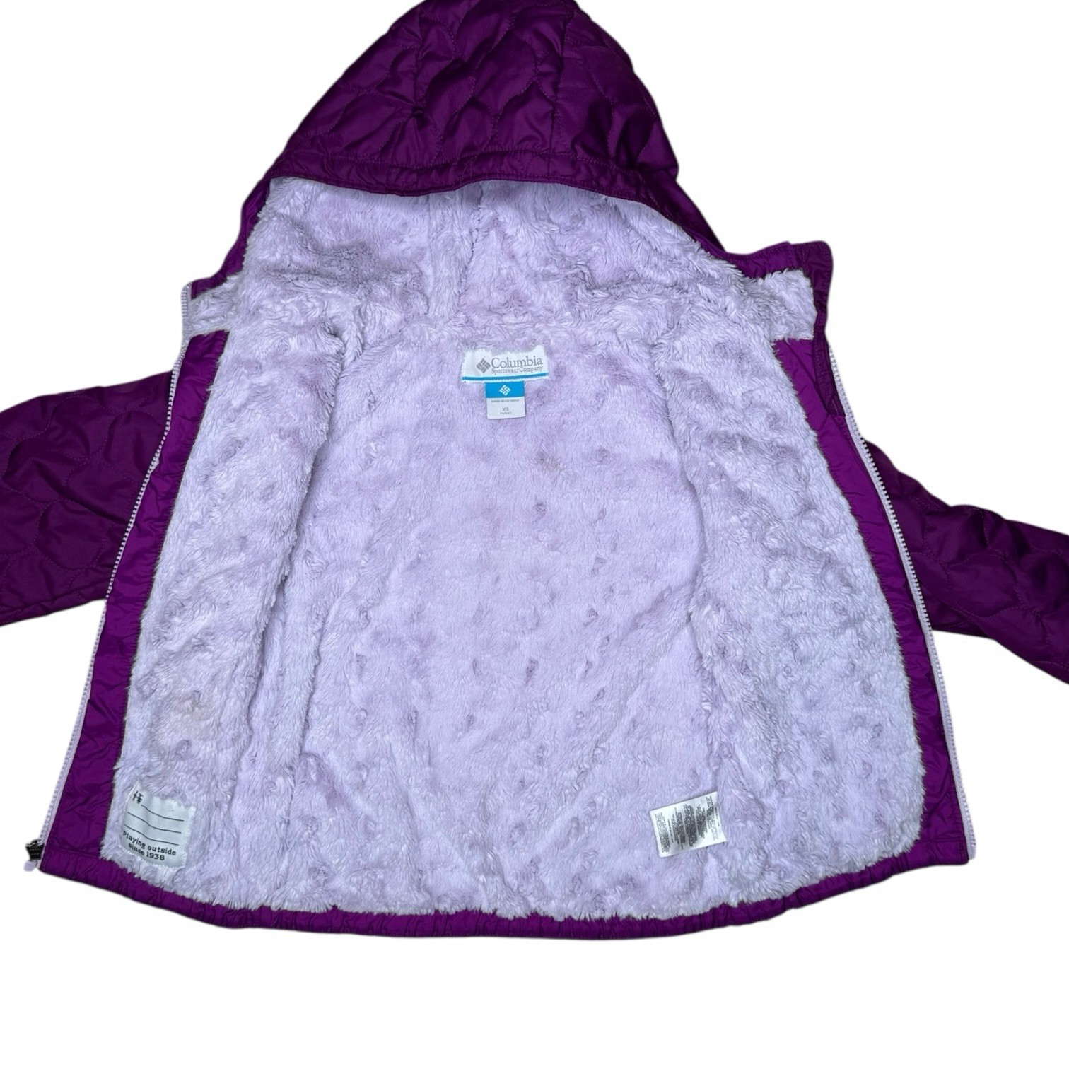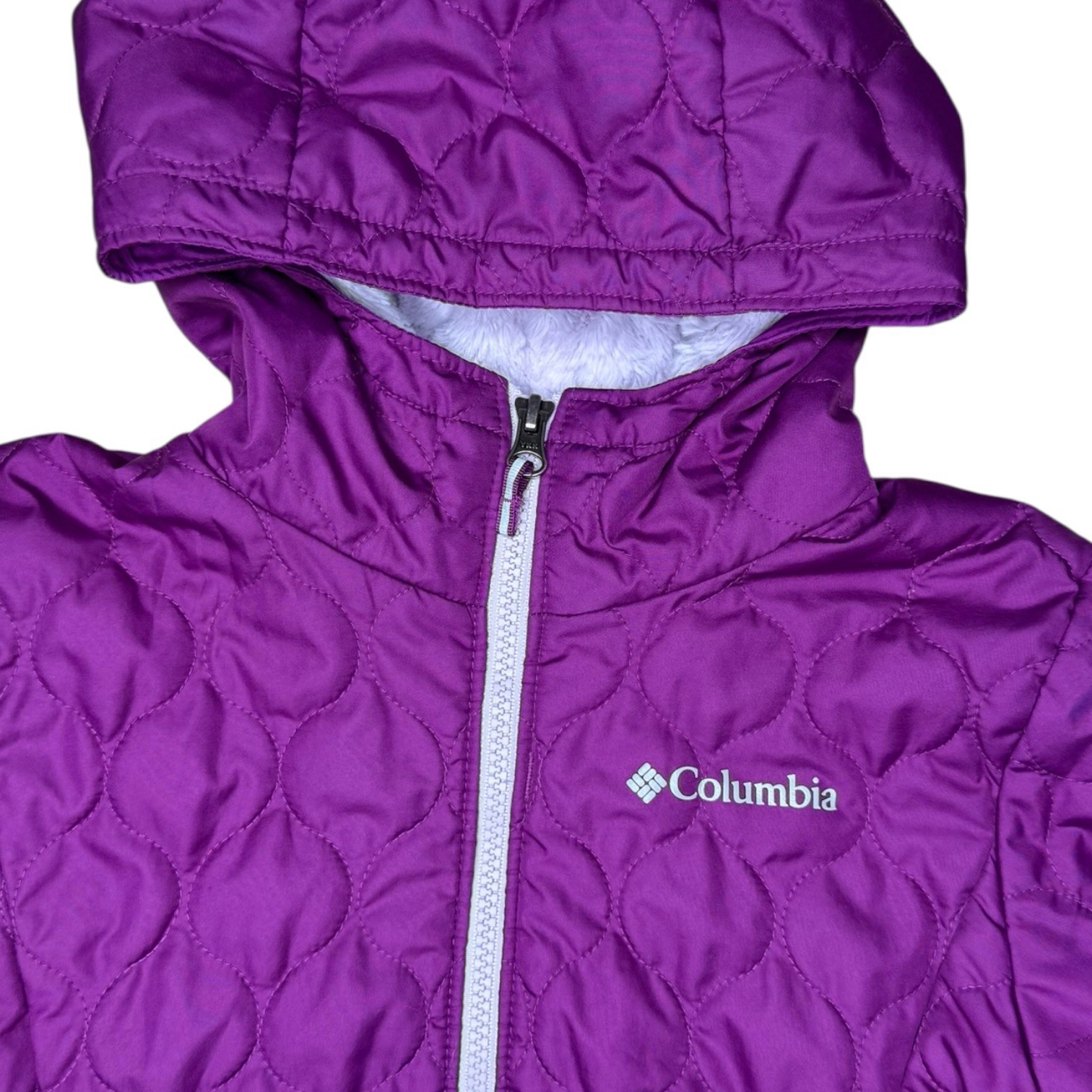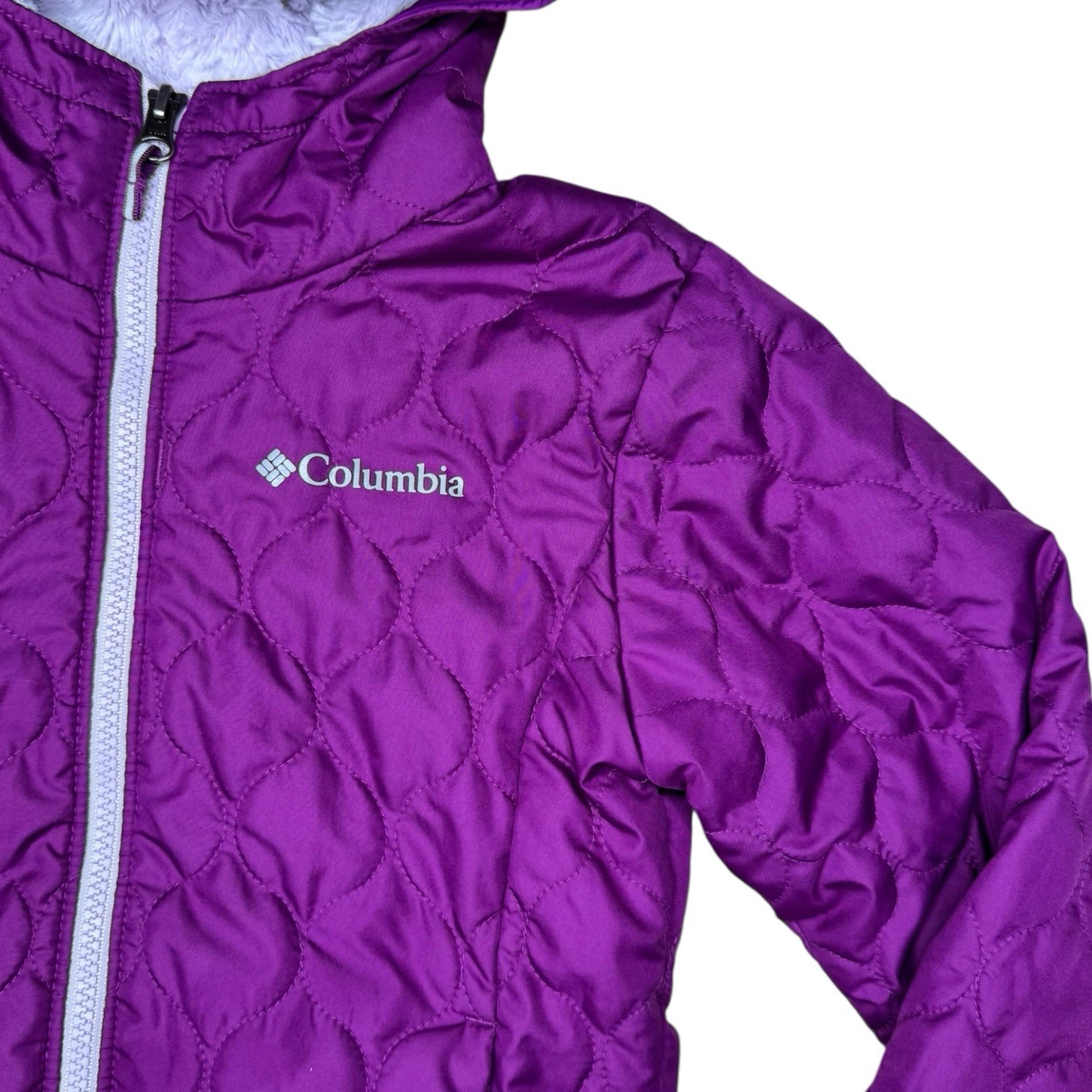 Columbia Girls Bella Plush Quilted Jacket XS 6 6X Hooded Fleece-Lined Purple
