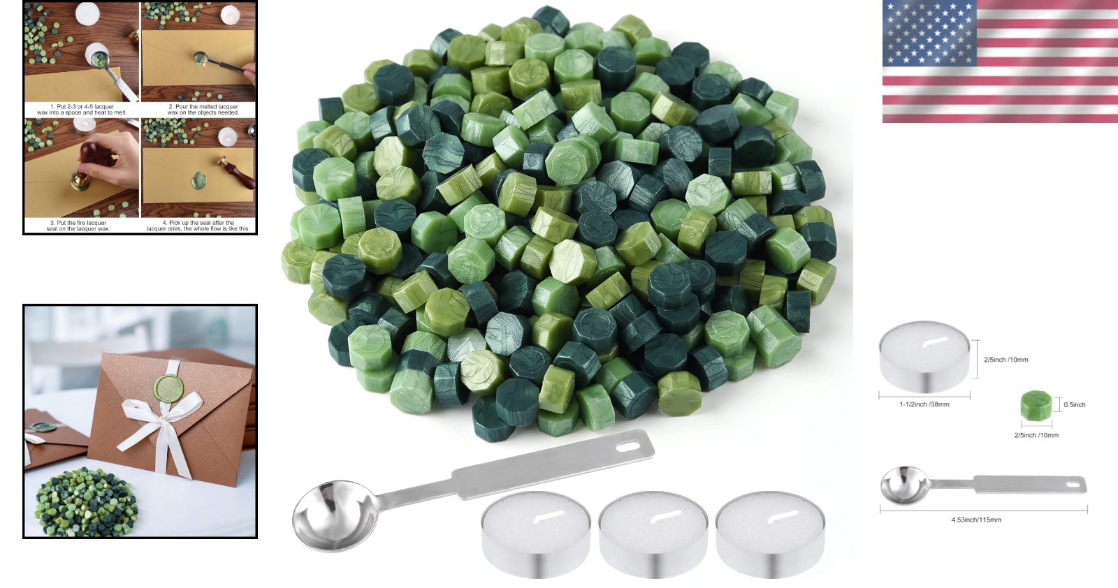как выглядит Elegant Green Sealing Wax Beads - 300 Octagon Beads for Personalizing Crafts фото