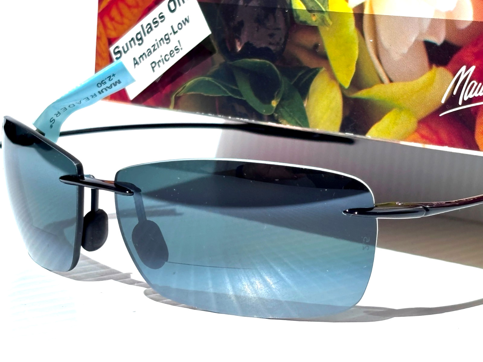 Maui Jim LIGHTHOUSE Gloss Black POLARIZED Grey Lens 2.5 READER Sunglass 423-0225