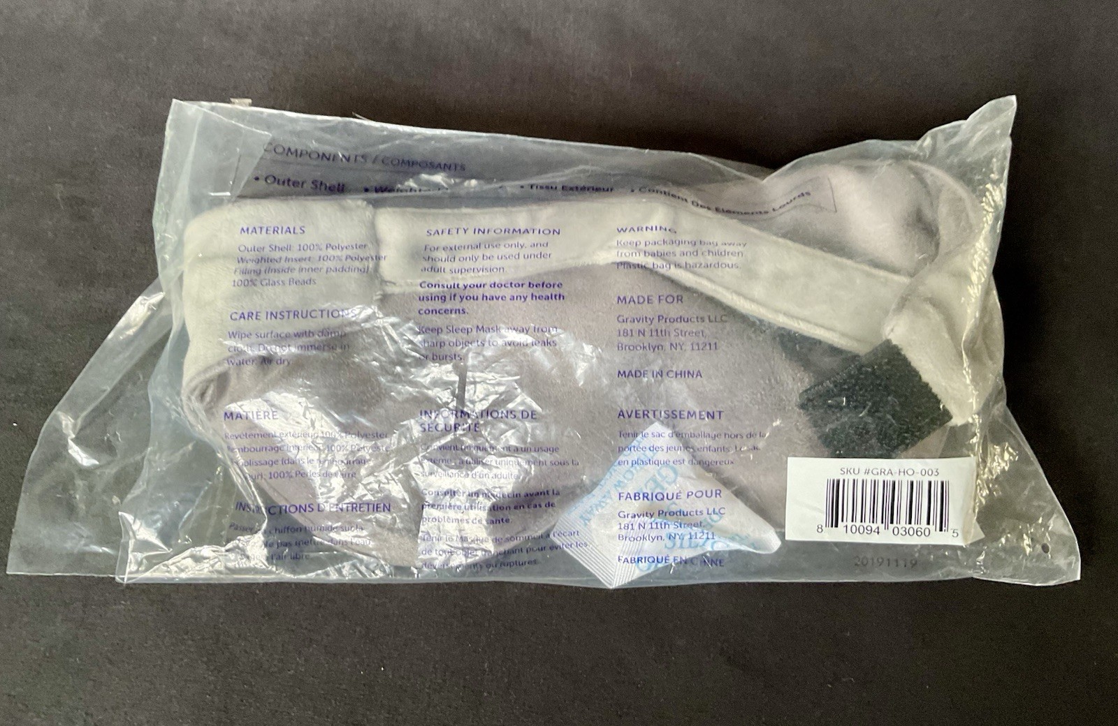 GRAVITY Weighted Sleep Mask Soft Gray Fleece Adjustable Strap NEW