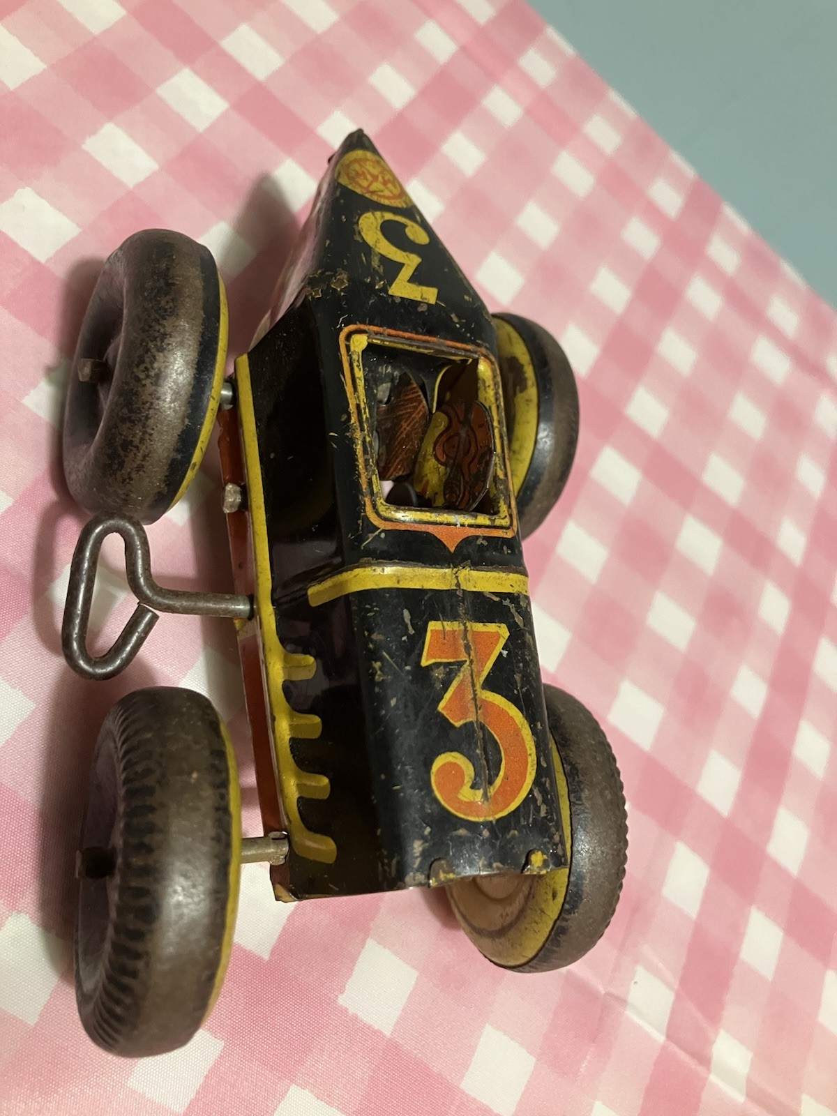 Vintage 1930's MARX 3 Tin Litho Windup Race Car for Restoration or Parts