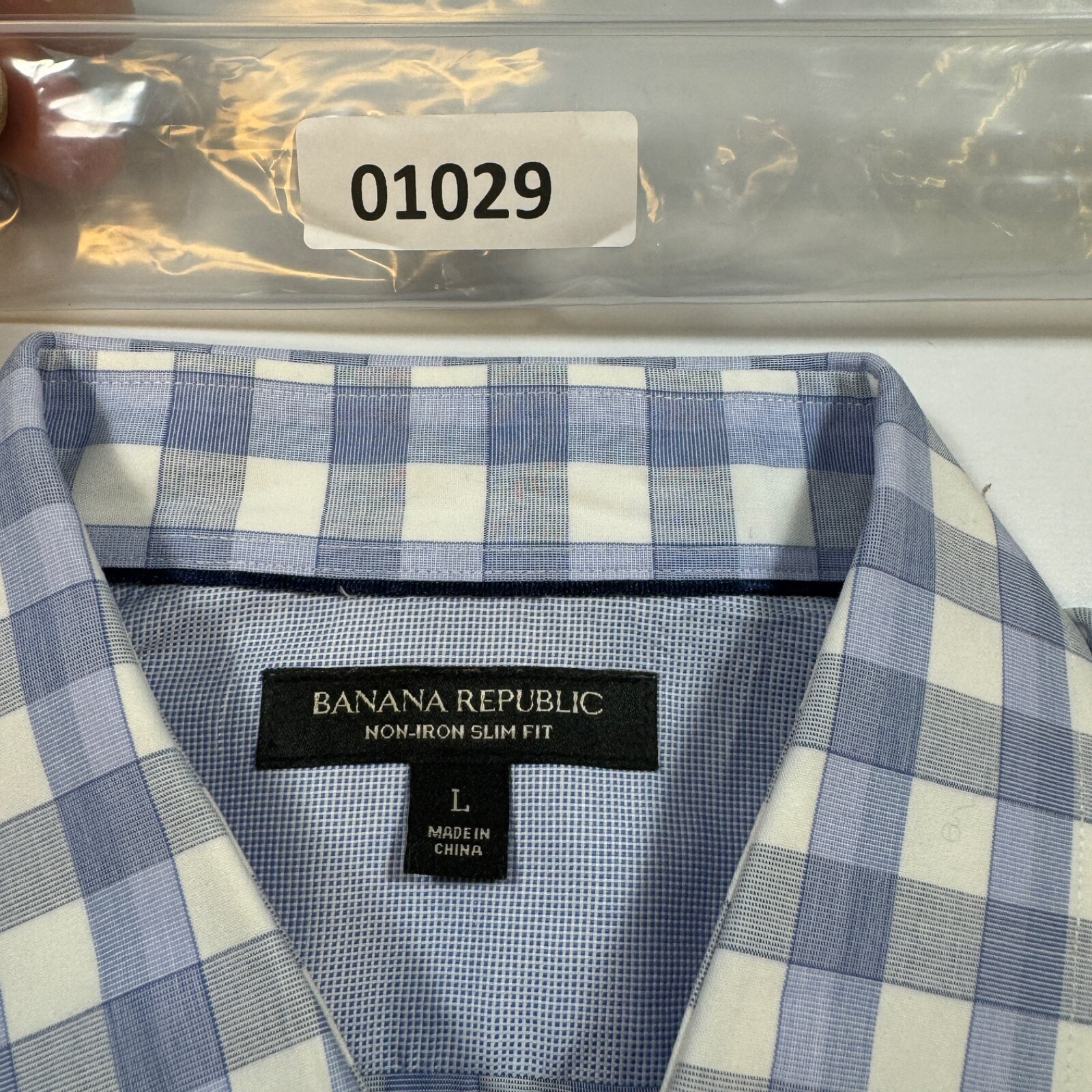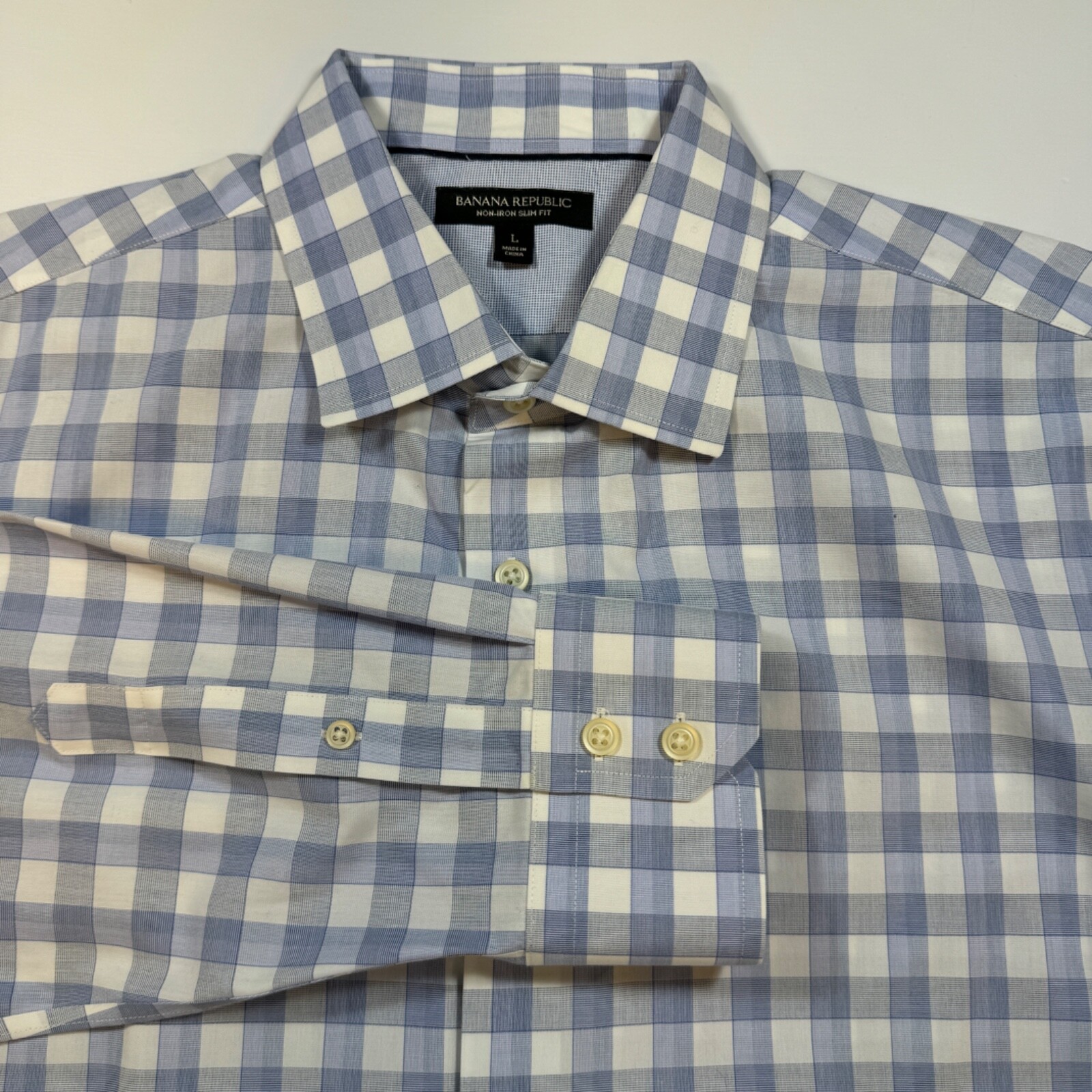 Banana Republic Non Iron Slim Fit Men's Size L Check Long Sleeve Casual Shirt
