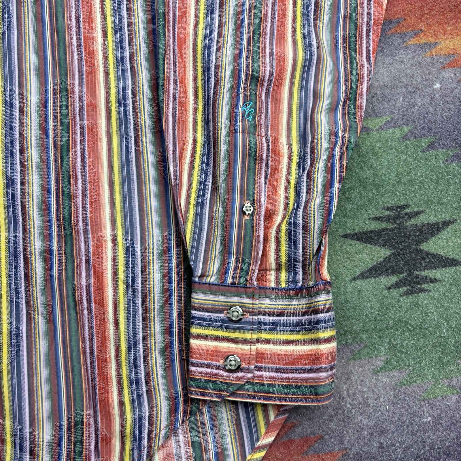 как выглядит Robert Graham Button Up Shirt Men s Medium Colorful Paisley Striped Long Sleeve фото