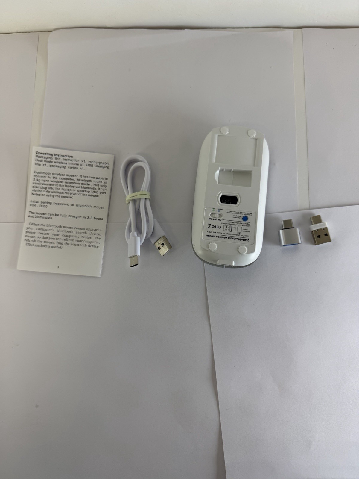 как выглядит Wireless Dual Mode Optical Mouse Bluetooth USB Rechargeable Silver Scroll Wheel фото