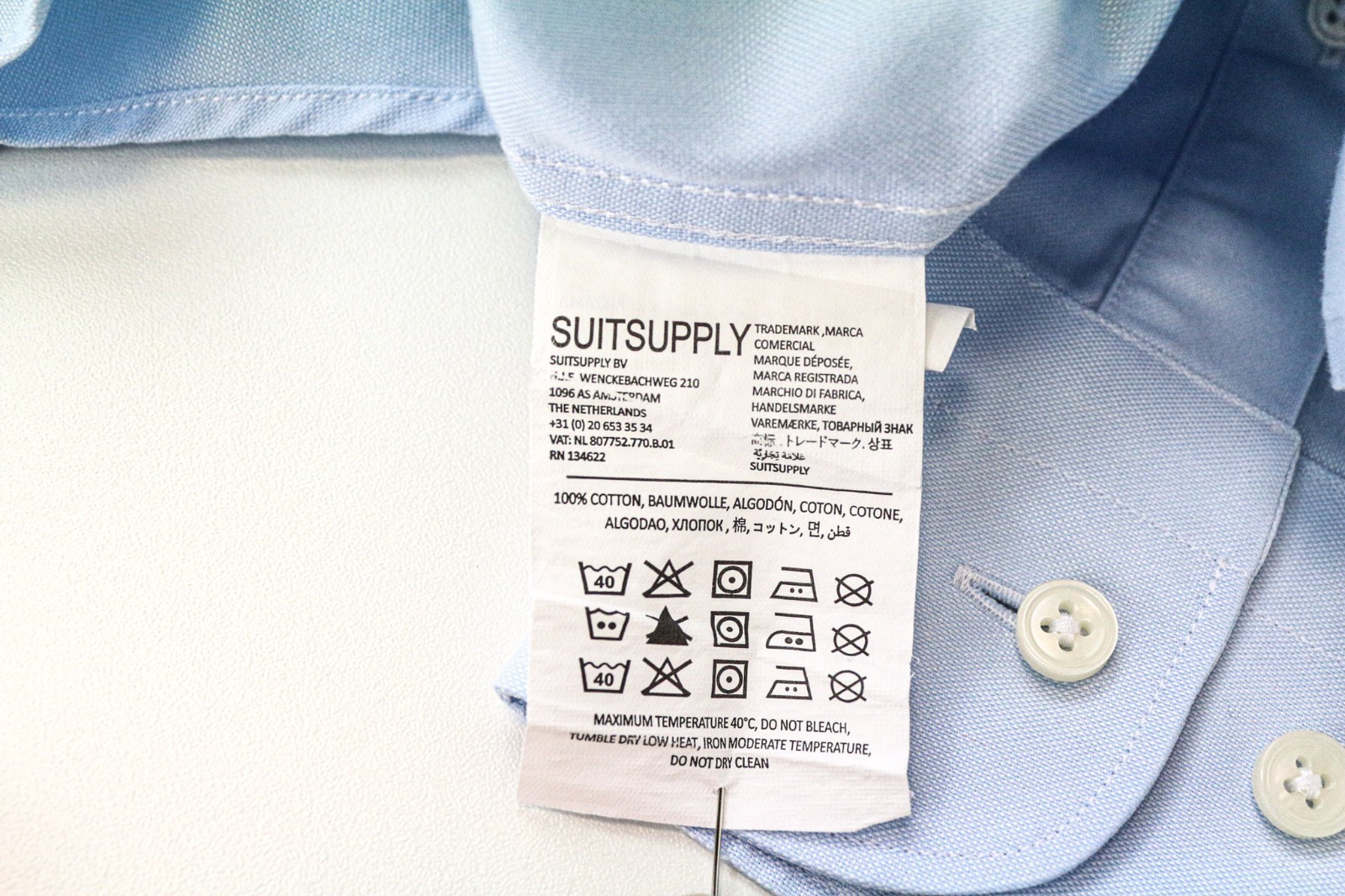 как выглядит Suitsupply Mens Formal Shirt 38L/15L Slim Blue Pure Cotton Classic Long фото