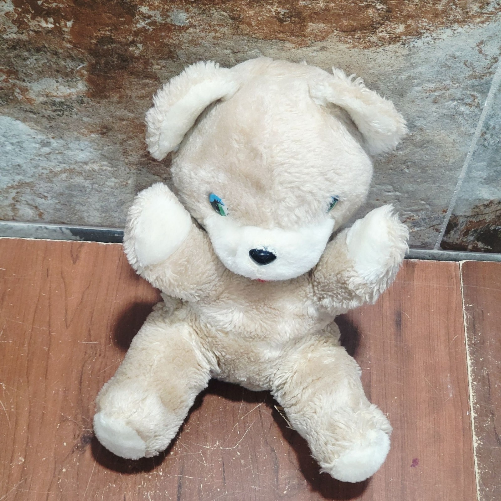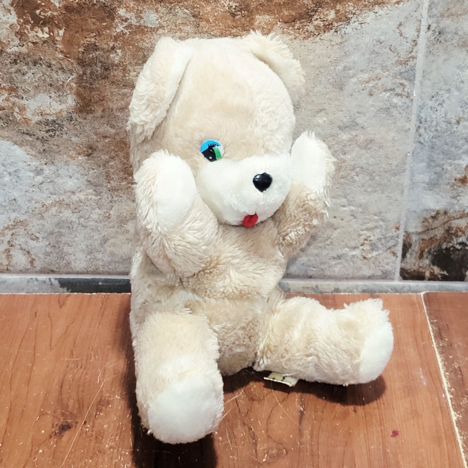 Vintage Plush Teddy Bear 1981 Plastic Eyes Red Tongue