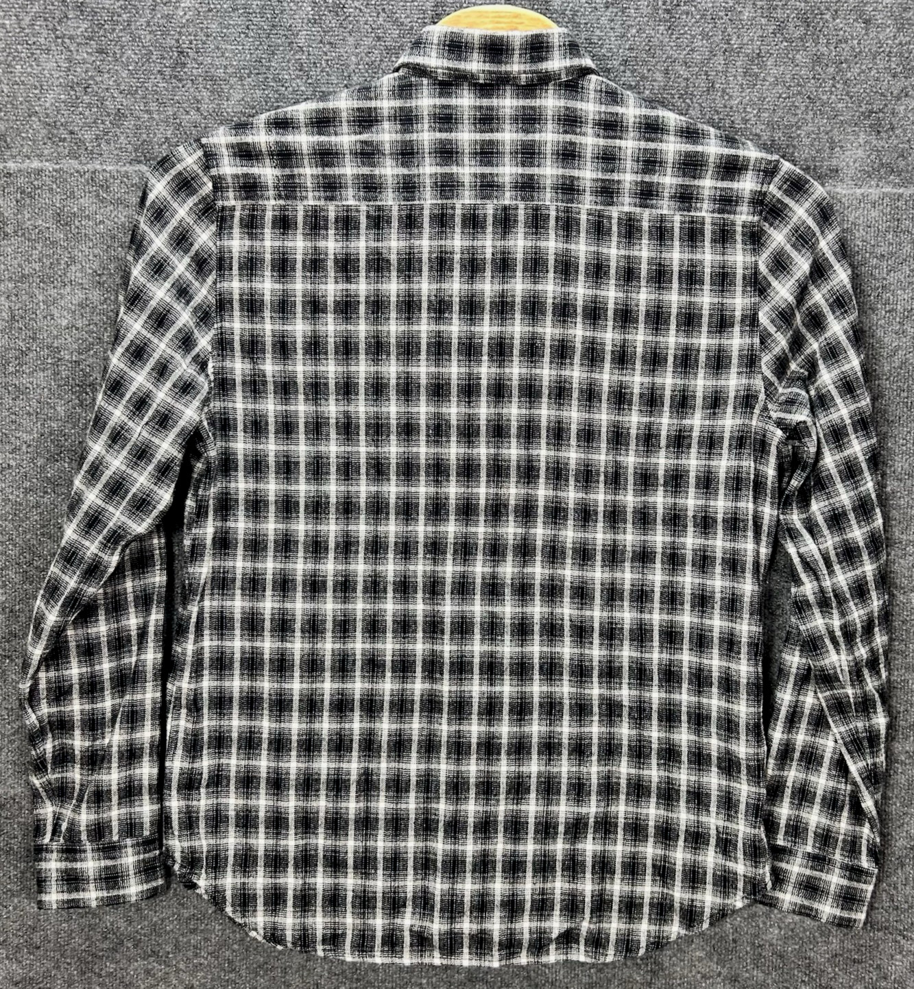 7 Seven For All Mankind Shirt Mens XL Button Down Cotton Black Grey White Plaid