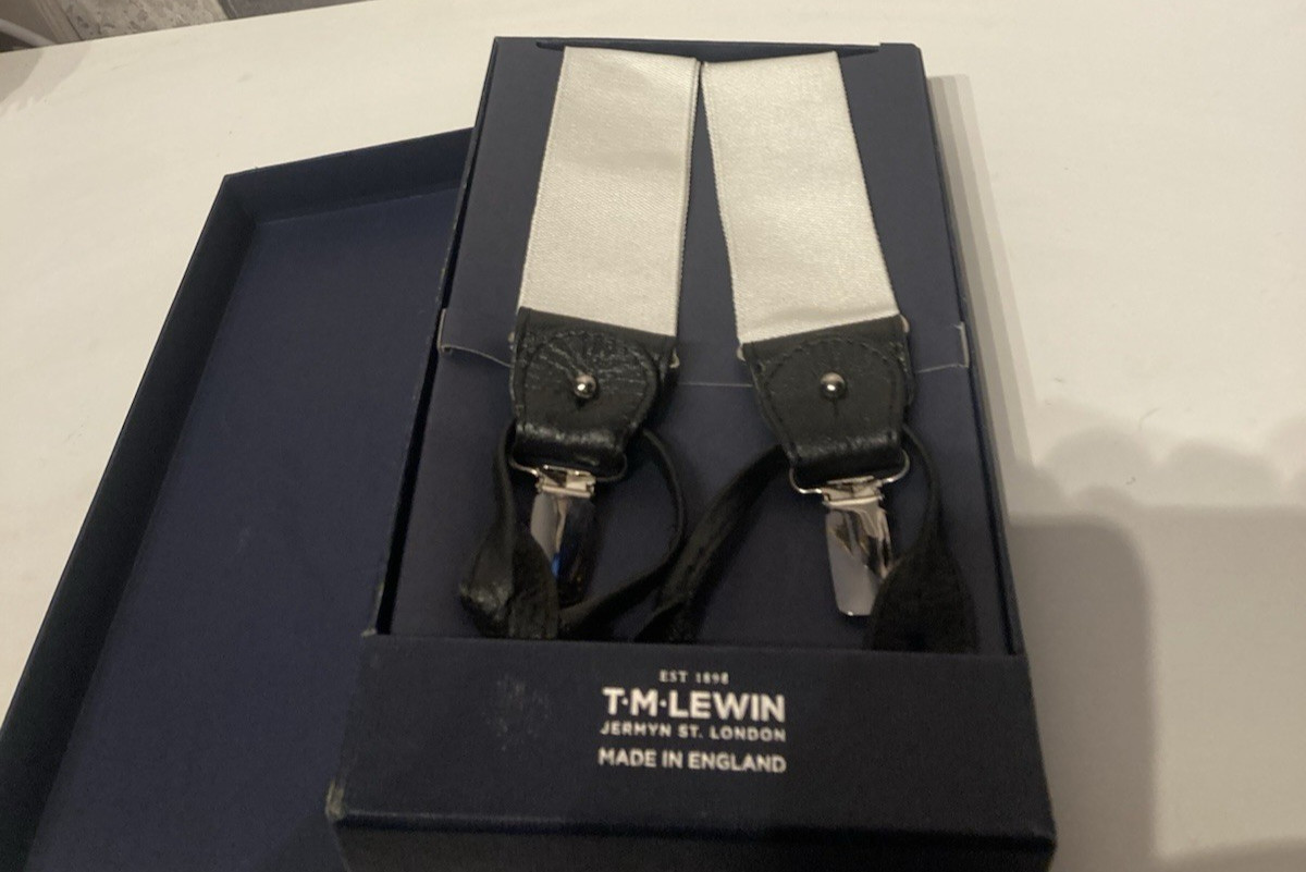 T M Lewin Men's Dual End White Braces - New in Box see notes