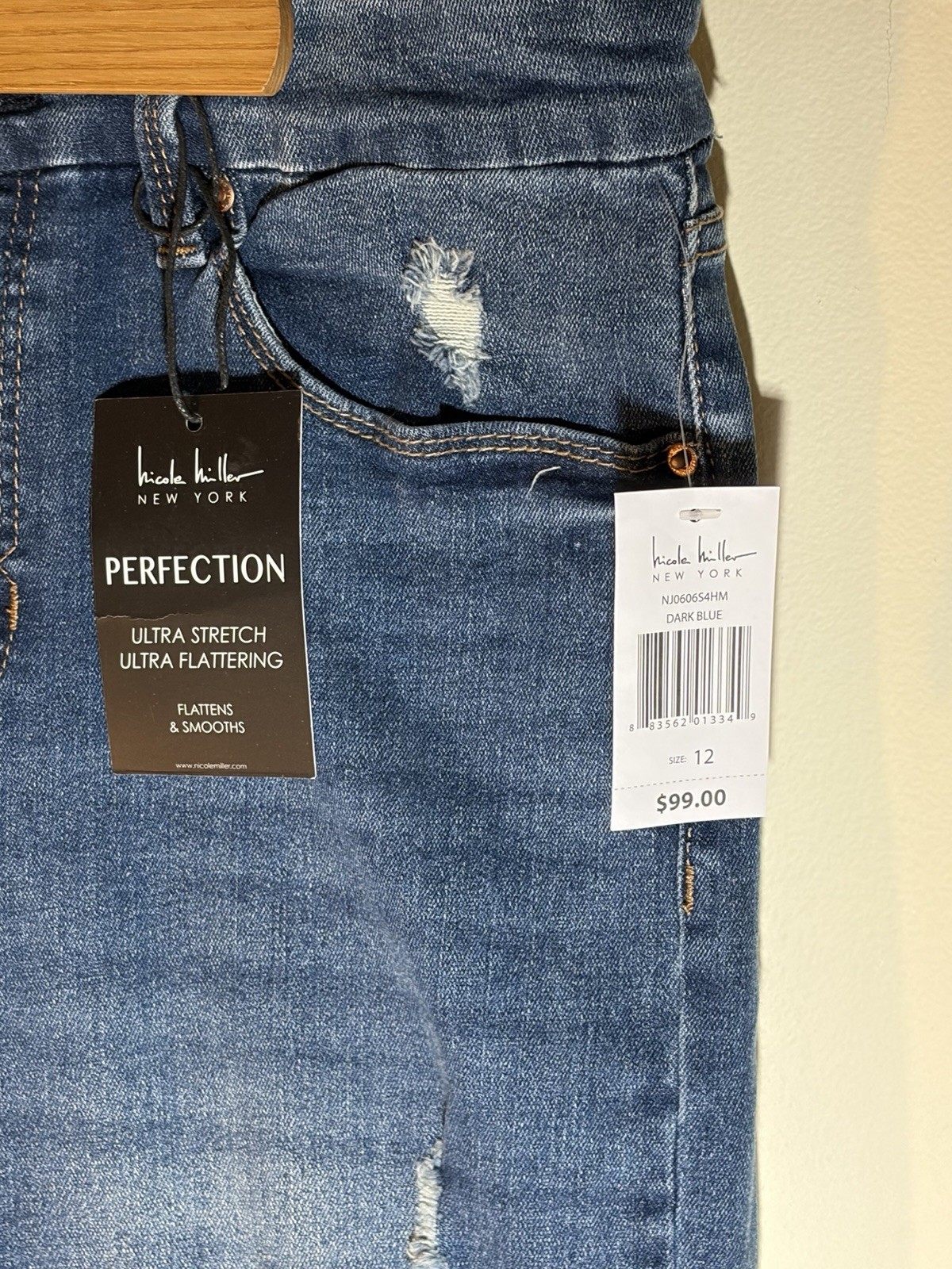 New Nicole Miller Perfection Soho High Rise Straight Crop Distress Jeans 12