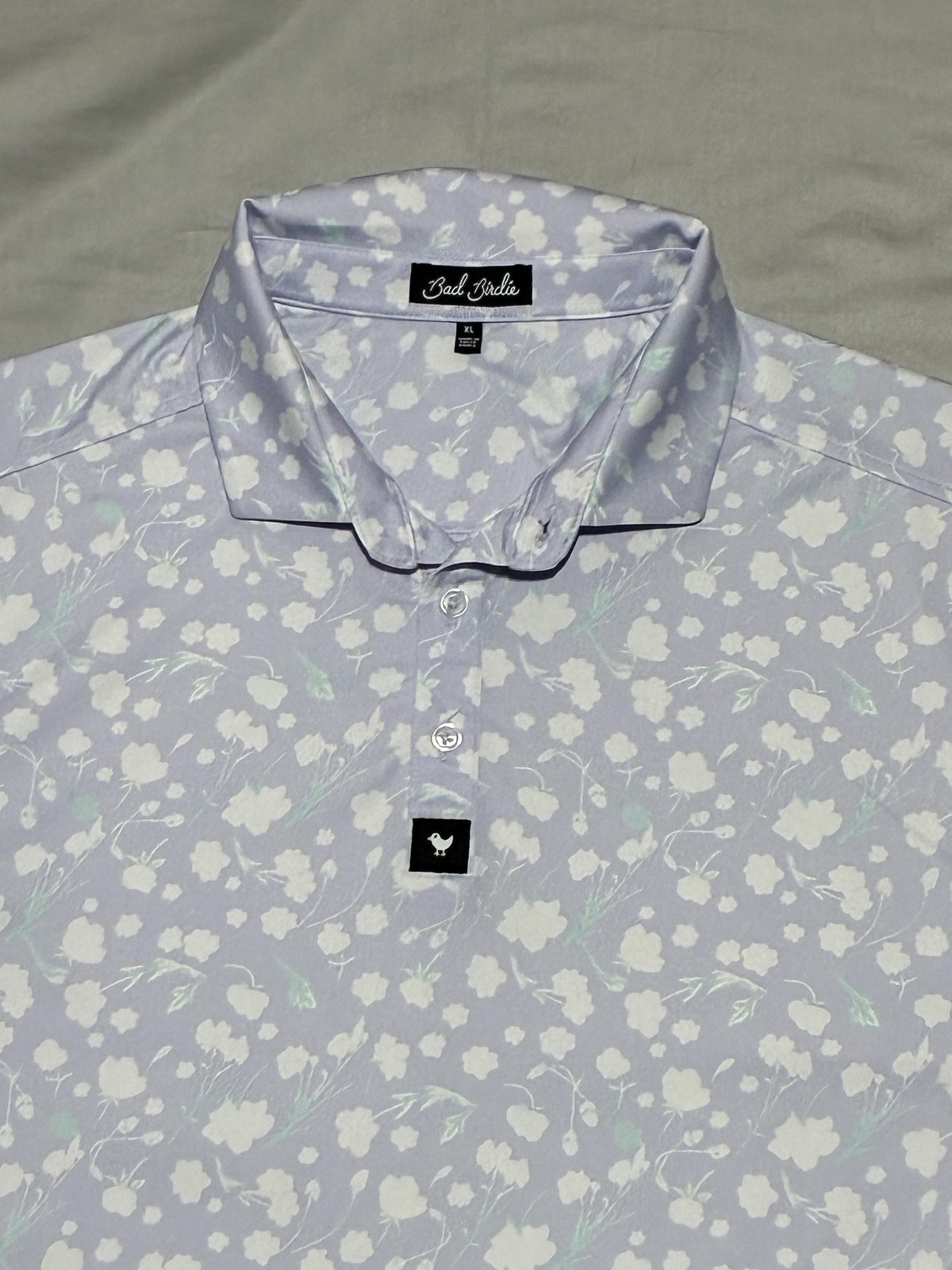 Bad Birdie Polo Shirt Mens XL Purple Floral Print Golf Performance Stretch