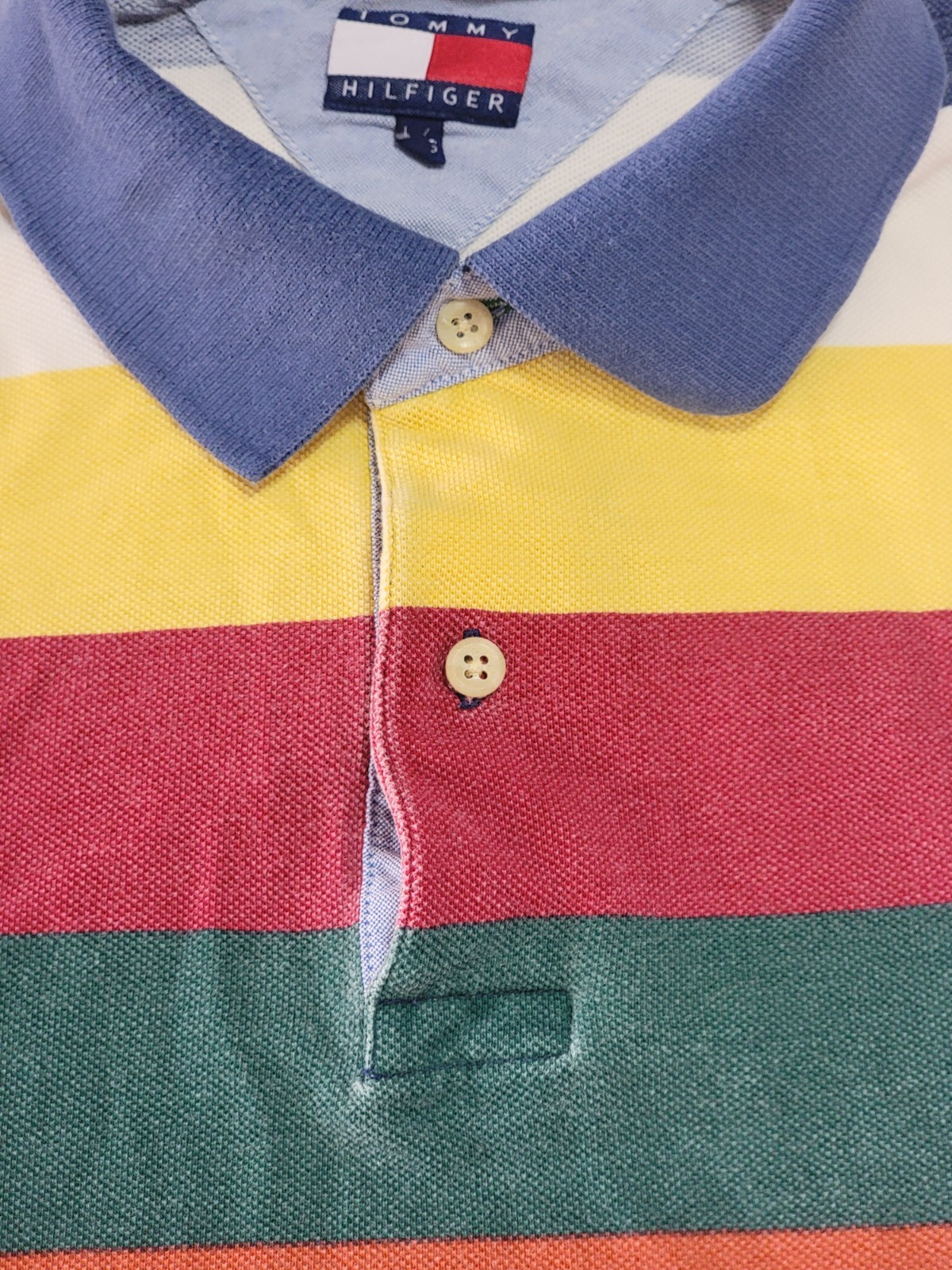 Vintage Y2K 90s Tommy Hilfiger Colorblock Horizontal Striped Polo Shirt Large