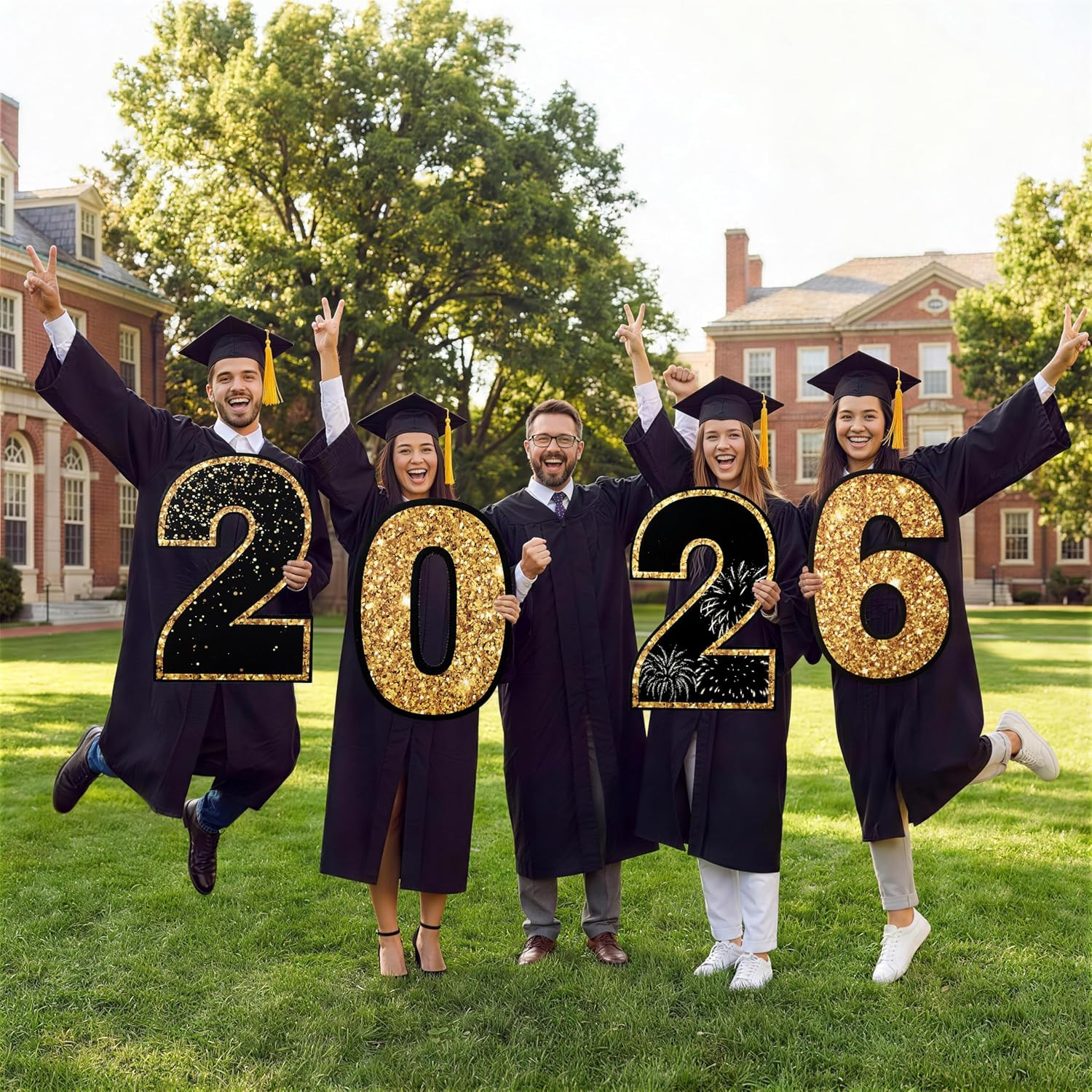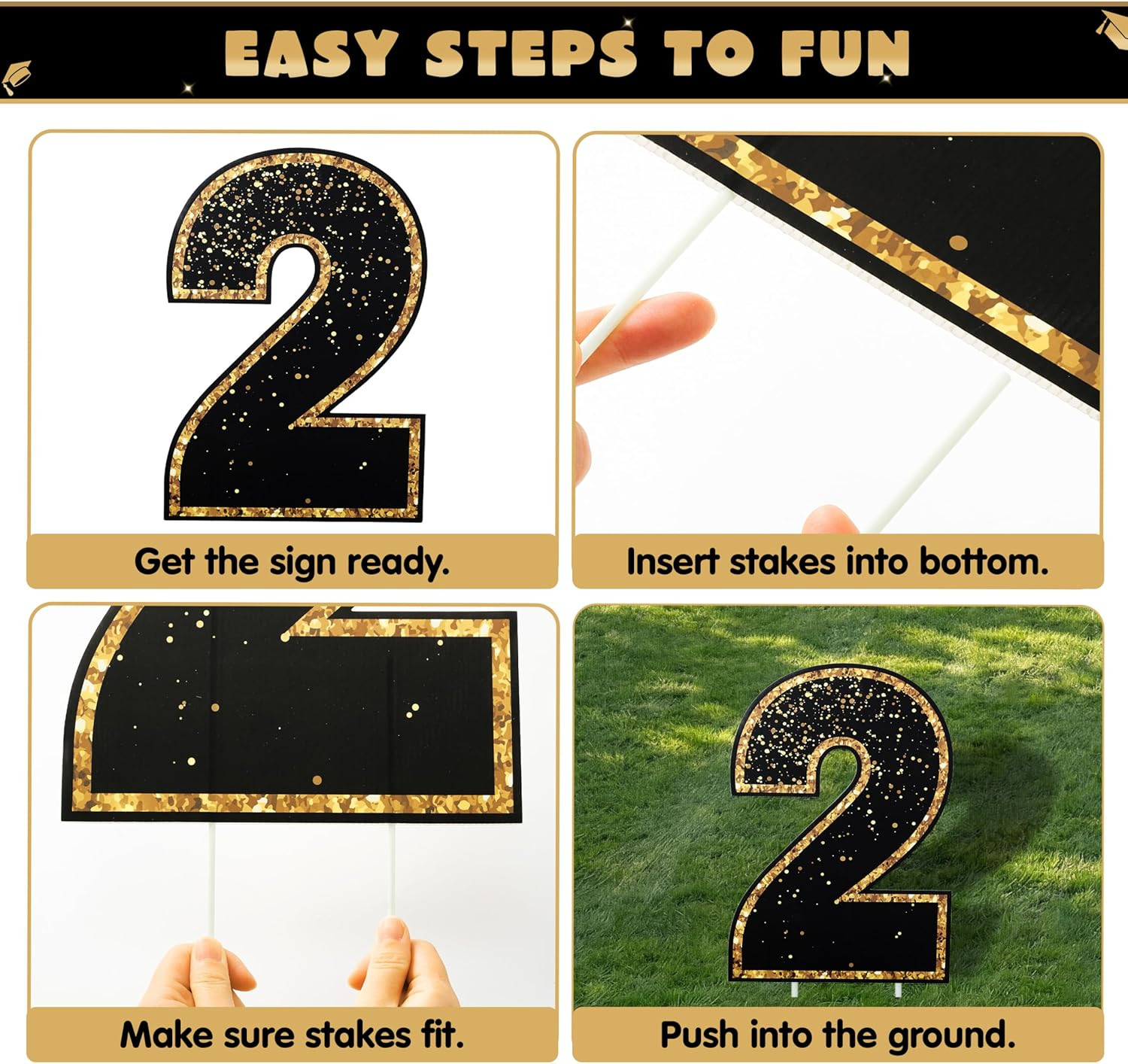 как выглядит 14 Pcs Graduation Yard Signs Class of 2026, Black Gold Congrats Grad Lawn Stak фото