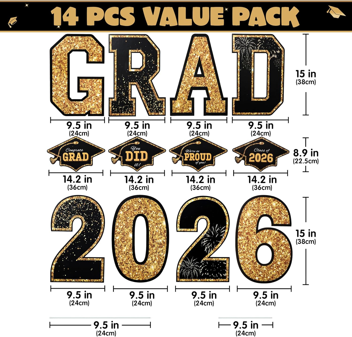 14 Pcs Graduation Yard Signs Class of 2026, Black Gold Congrats Grad Lawn Stak