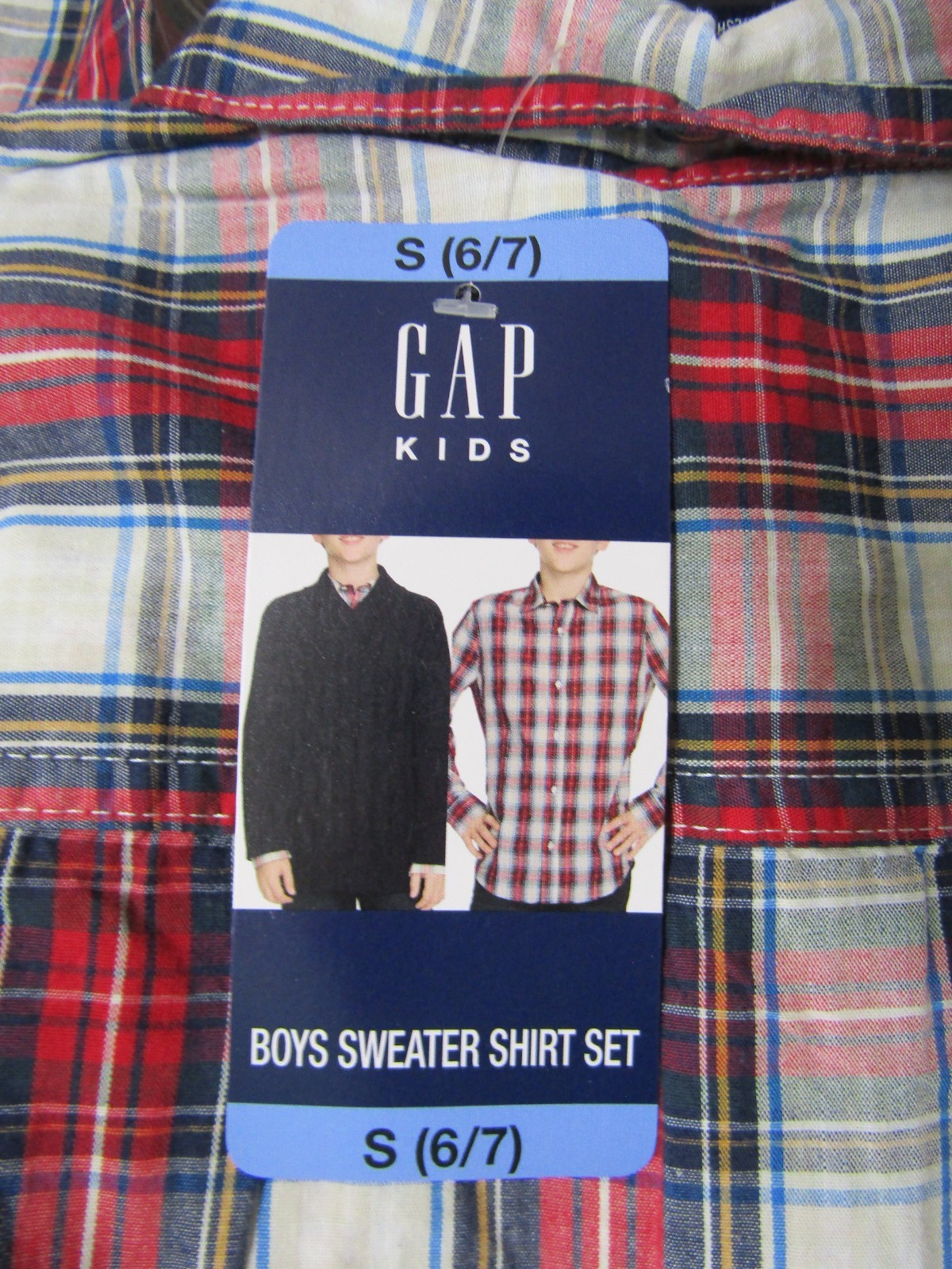 как выглядит NWT GAP Solid Knit Black Wrap Front Sweater Plaid Shirt Set Youth Size S 6-7 фото