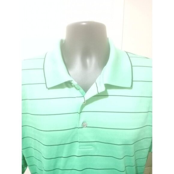 NEW NWT PGA Tour Dry Wicking Polyester Green Striped Short Sleeve Polo Shirt XL