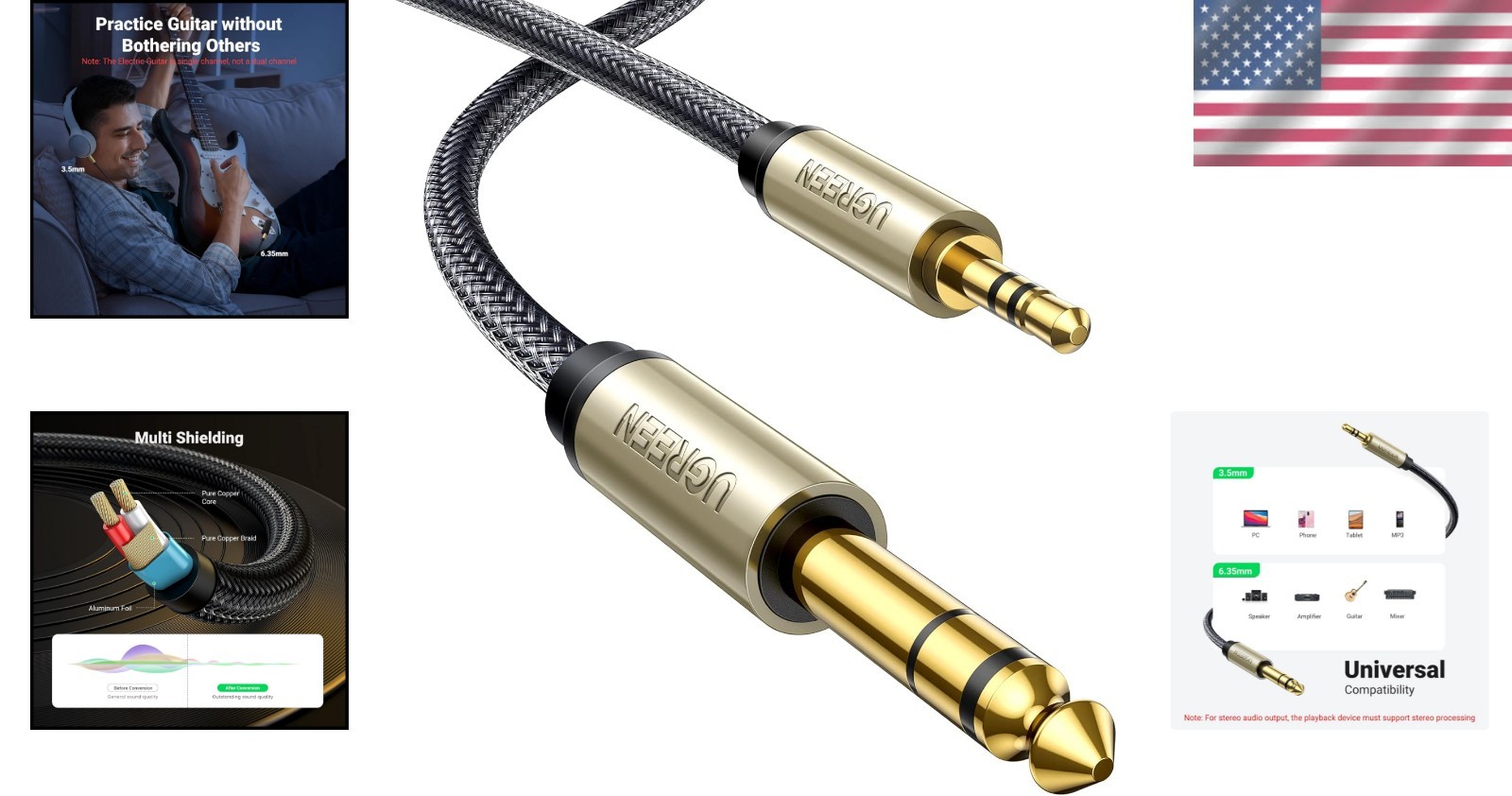 как выглядит High-Fidelity 1/8 to 1/4 Stereo Cable with Zinc Alloy and Nylon Braid 6.6FT фото