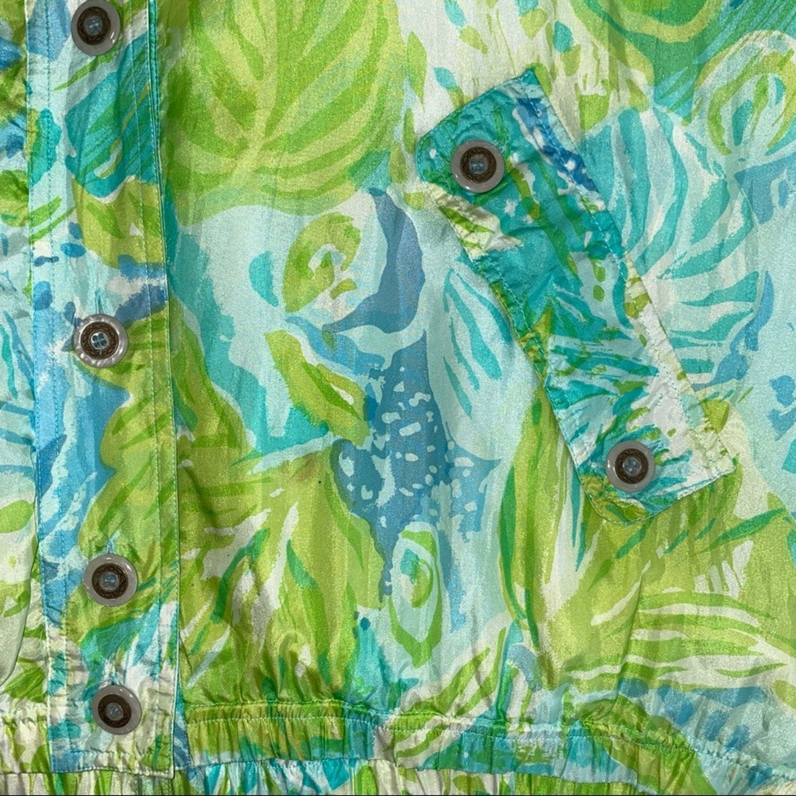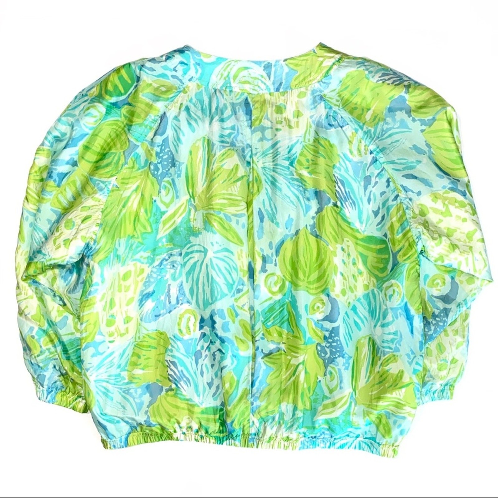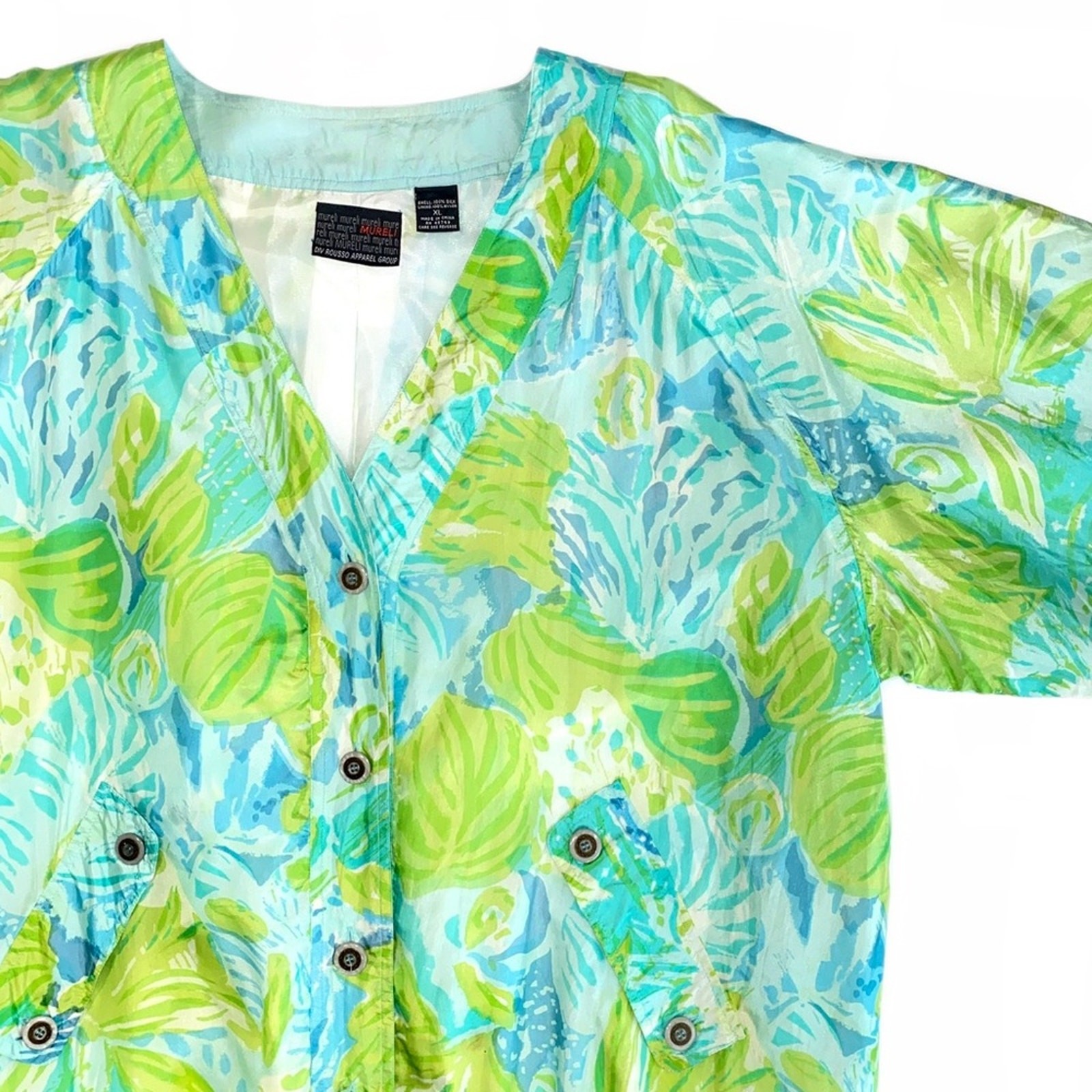 как выглядит Vintage Mureli Silk Tropical Watercolor Bomber Jacket Size XL фото
