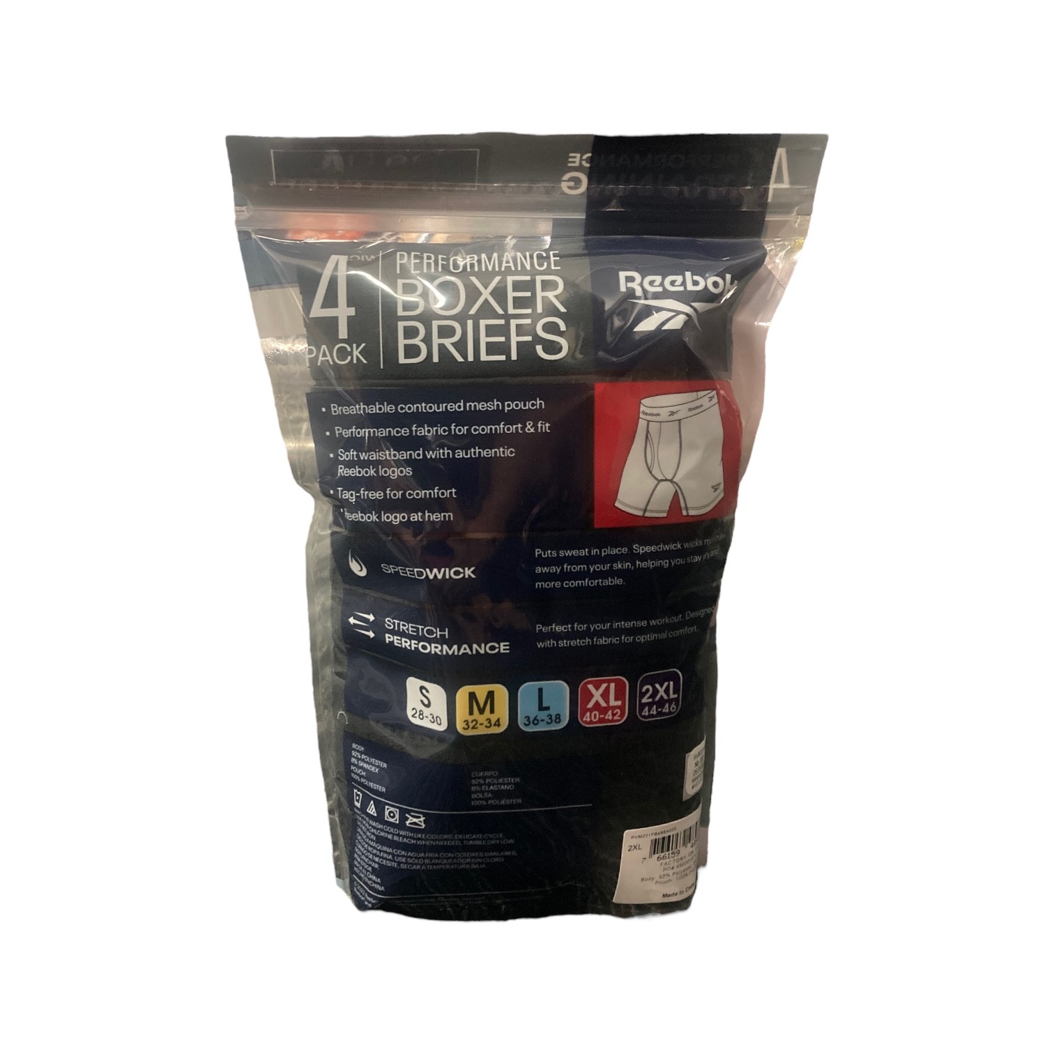 Reebok Men's Speedwick Stretch Performance Boxer Brief, 4 Pack Black, S