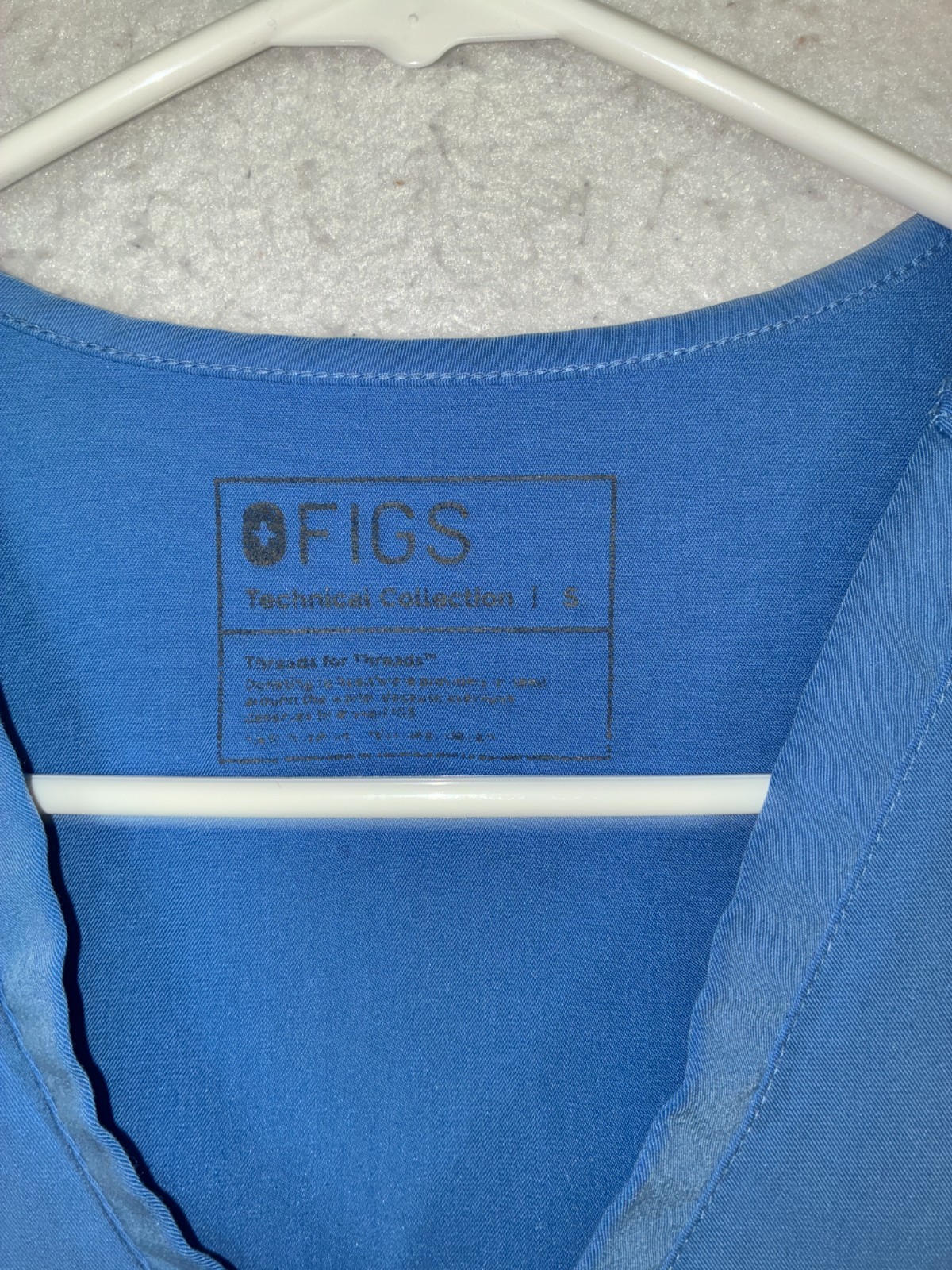 как выглядит Figs Ceil Blue V Neck Short Sleeve Casma Scrub Top Womens sz S PO 1668 pockets фото
