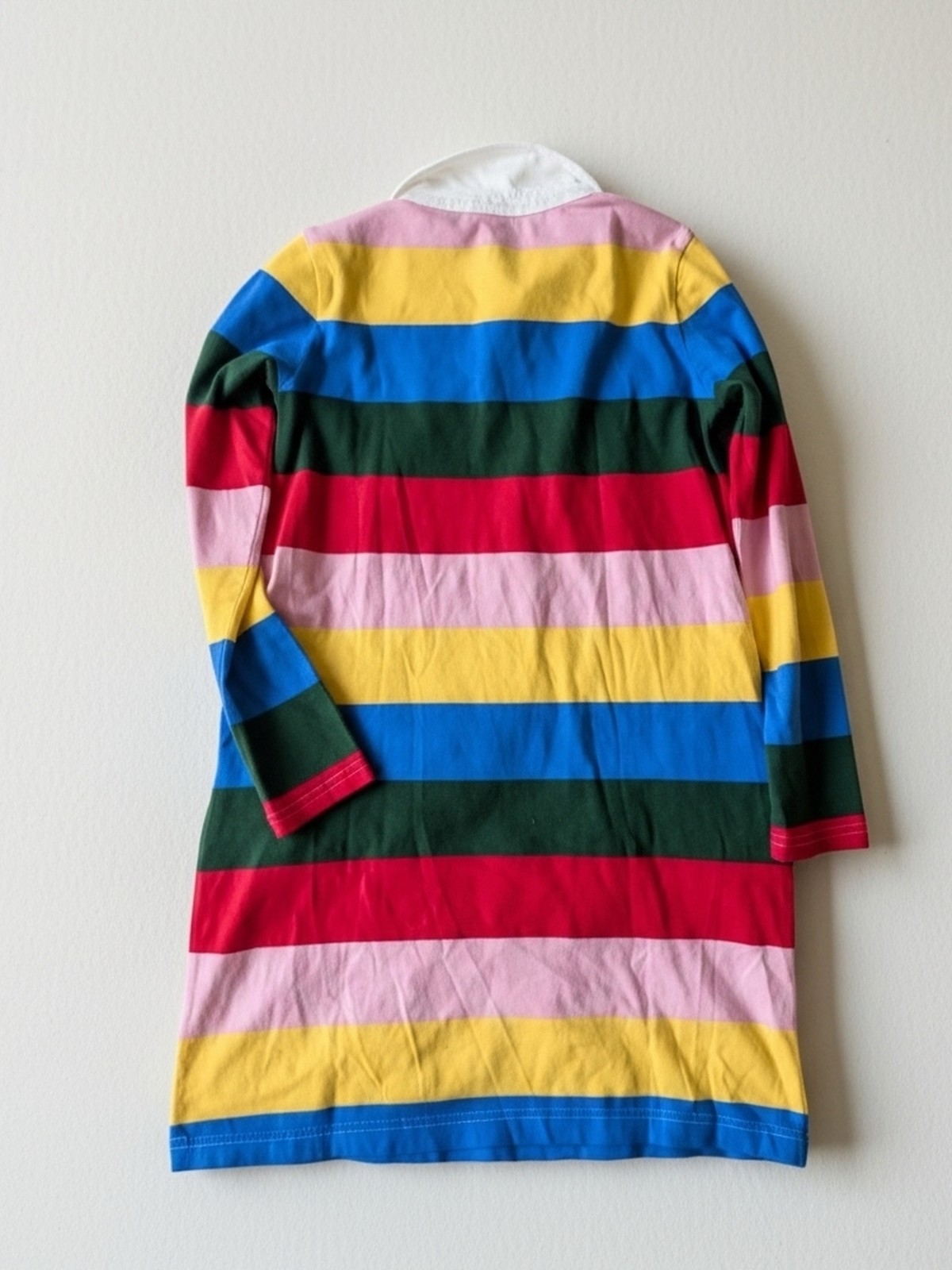 как выглядит NWT Primary Rainbow Striped Long Sleeve Rugby Dress Size 12 фото