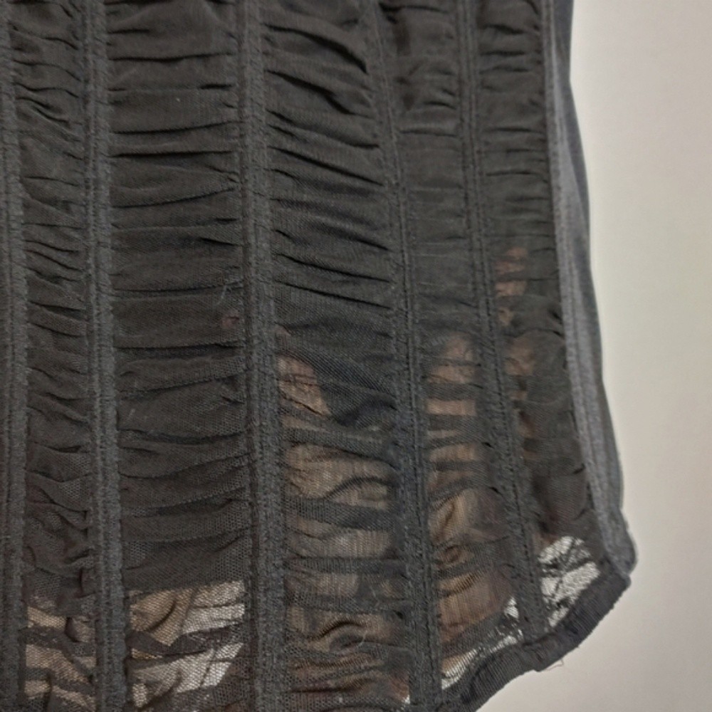 как выглядит Shirley of Hollywood Corset Bustier Top Black Pin Tuck Mesh Stretch Sheer Large фото