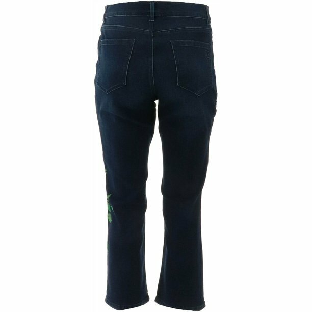 как выглядит 12 DG2 Diane Gilman Stretch Embroidered Straight Leg Denim Jean Indigo 710-600 фото