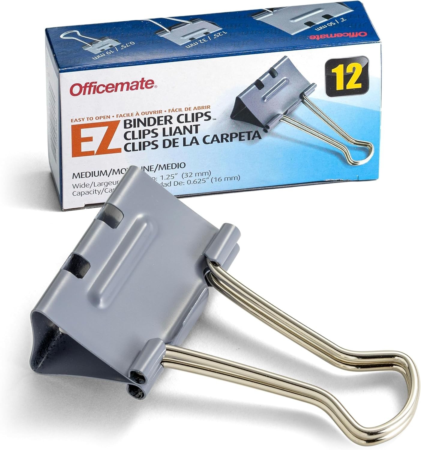 EZ Binder Clips in Cool Gray, 1.5 Inch, 12-Pack - Perfect for Organization