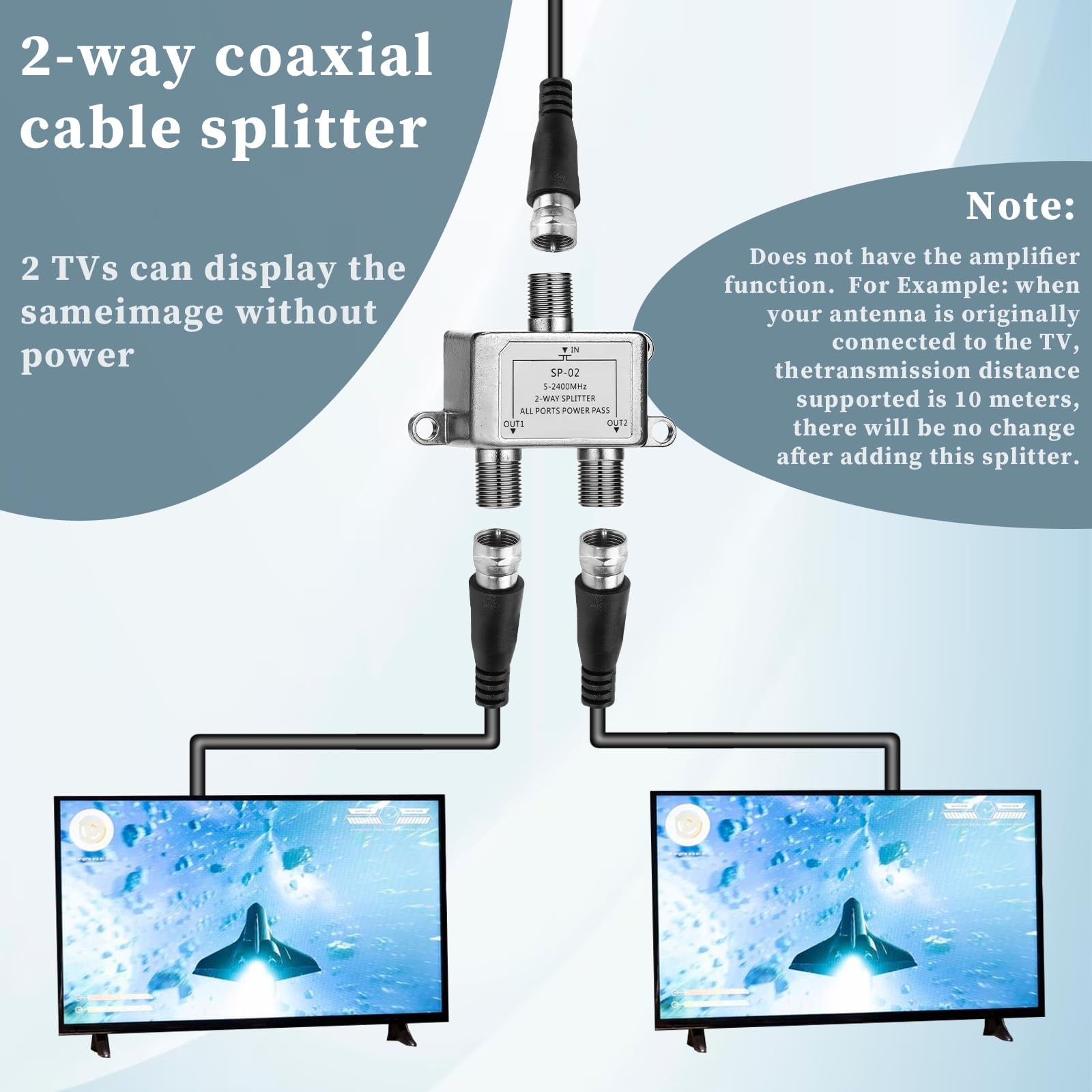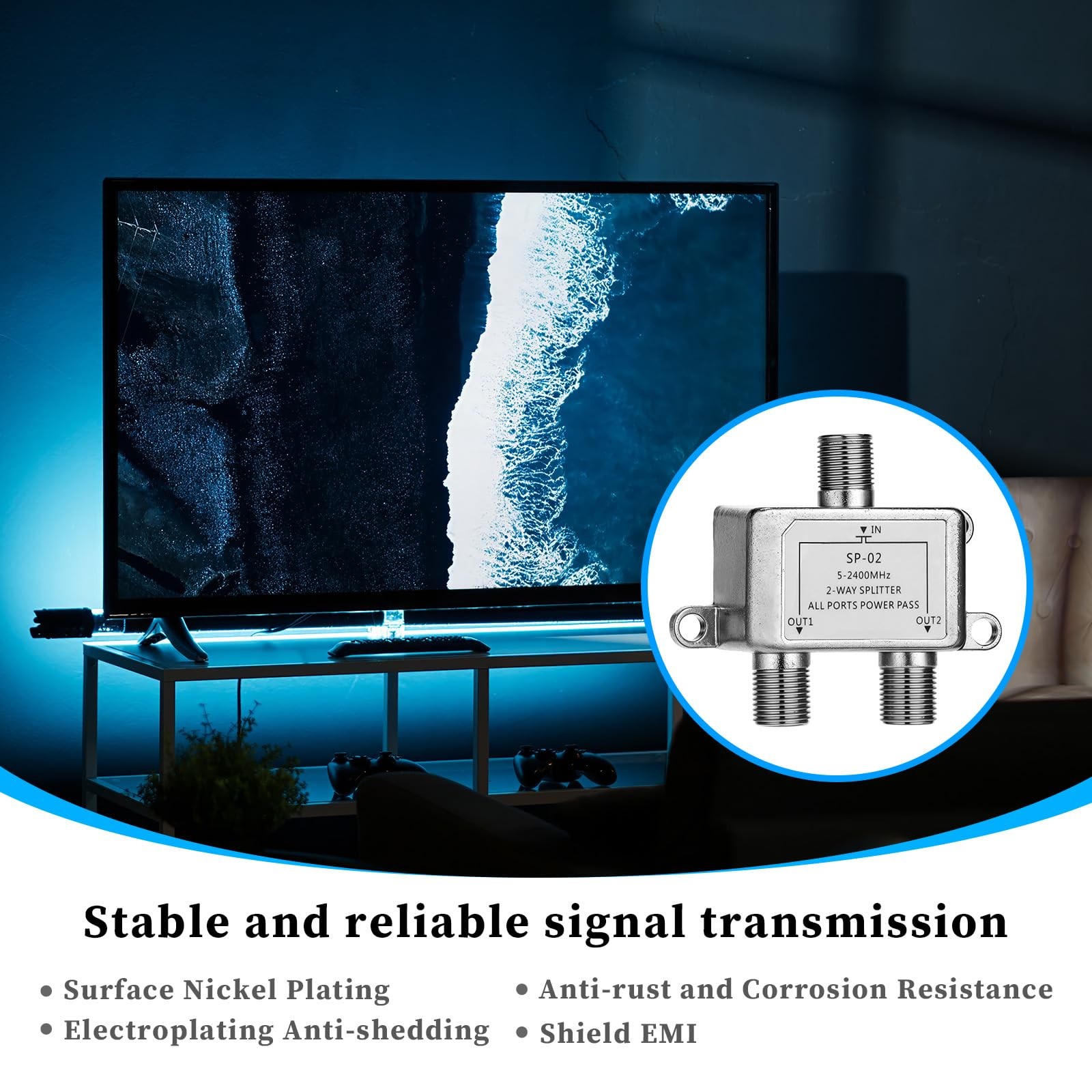 2 Way Coax TV Splitter RG6 Compatible 5-2400MHz for CATV Antenna System