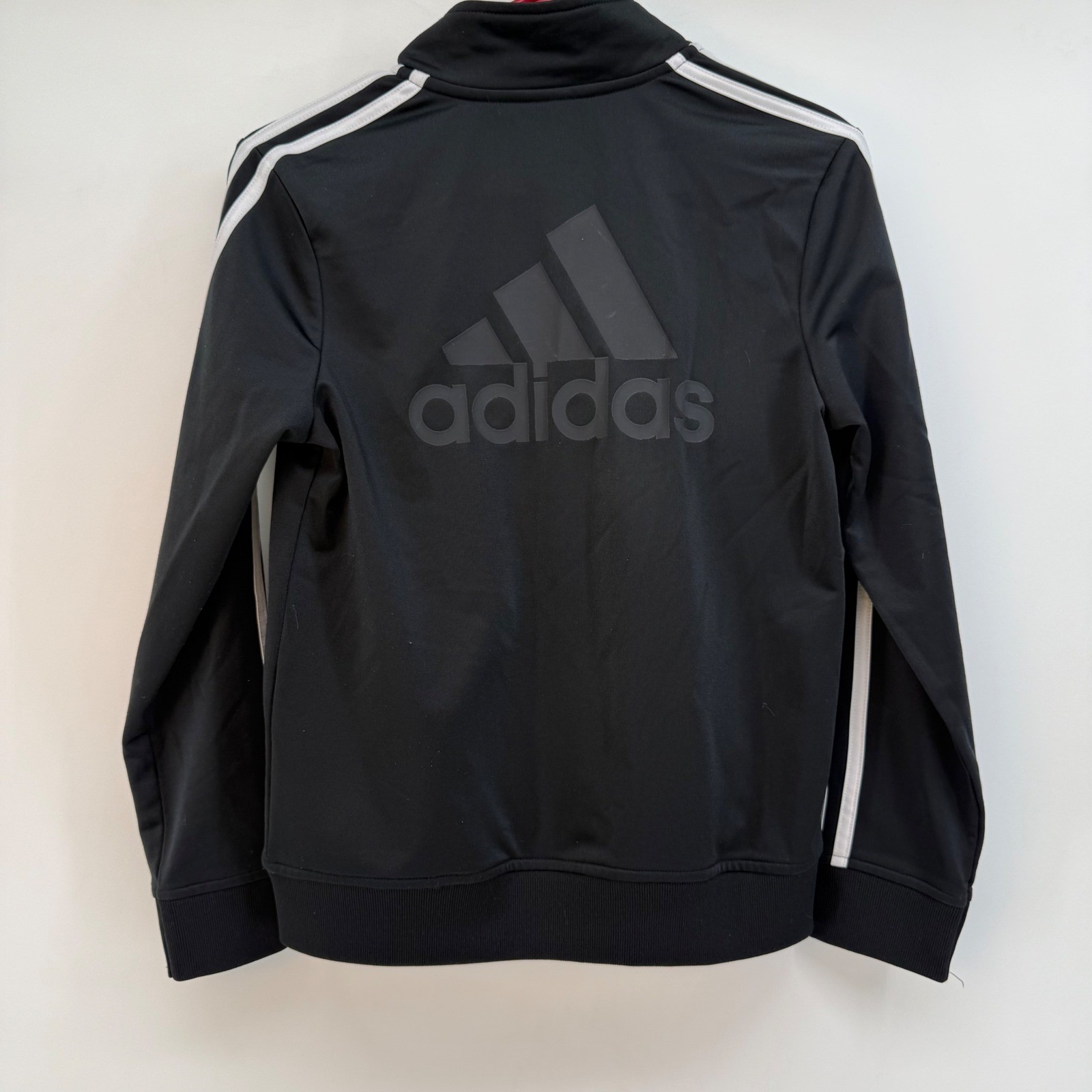 как выглядит Adidas Track Jacket Black White Stripes Zip Up Boys Girls Kids Size M 10 12 фото