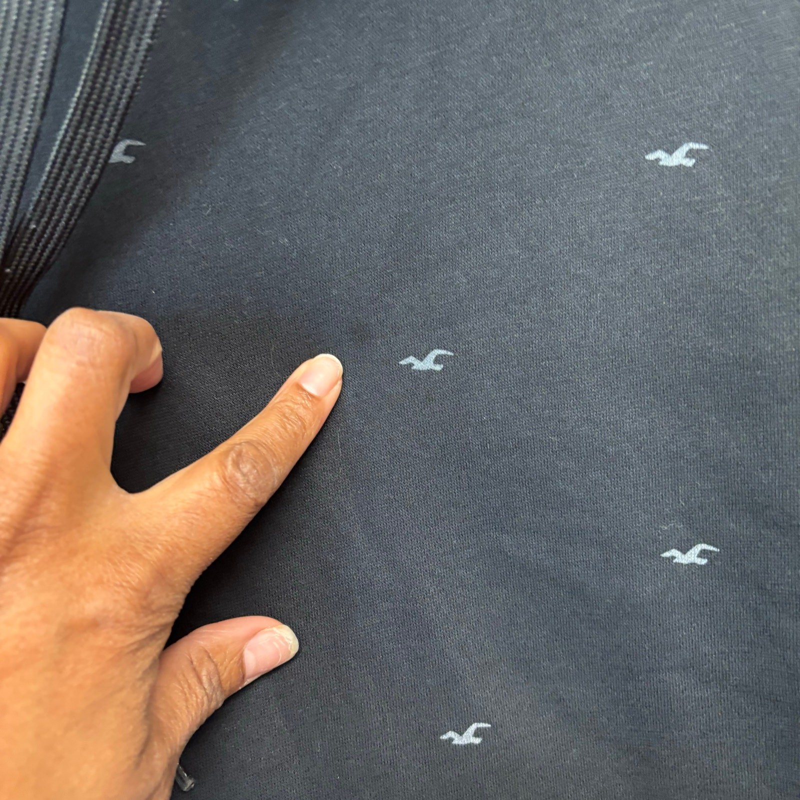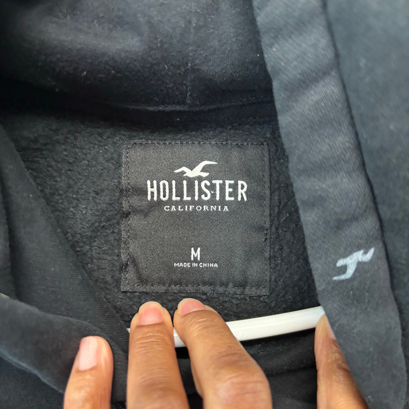 Hollister Men s Hoodie Sweatshirt Black Logo Allover Print Pullover Medium Prep