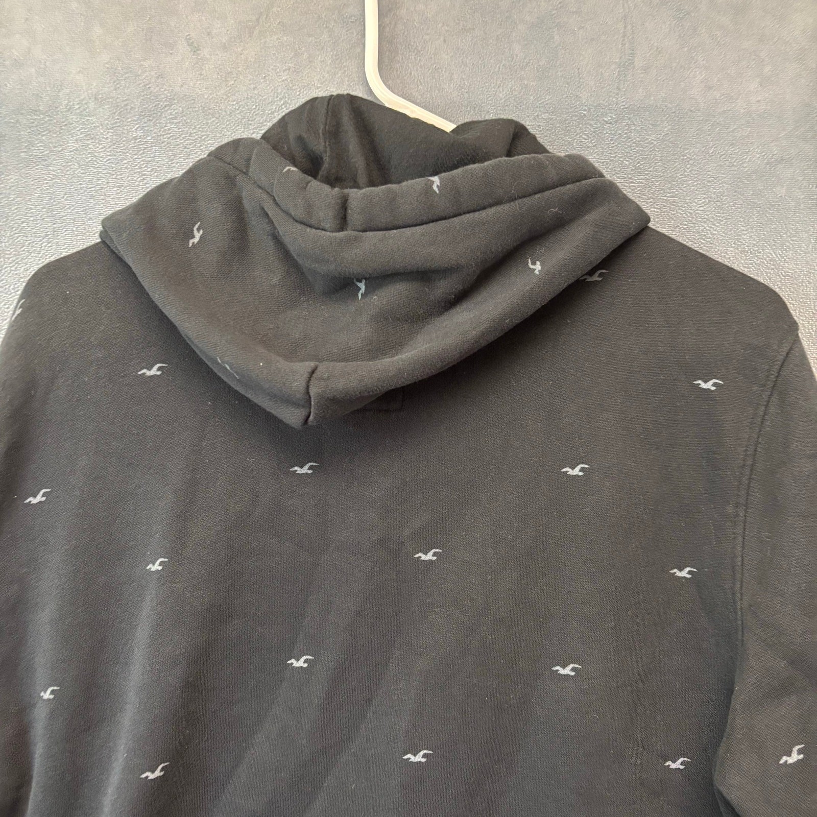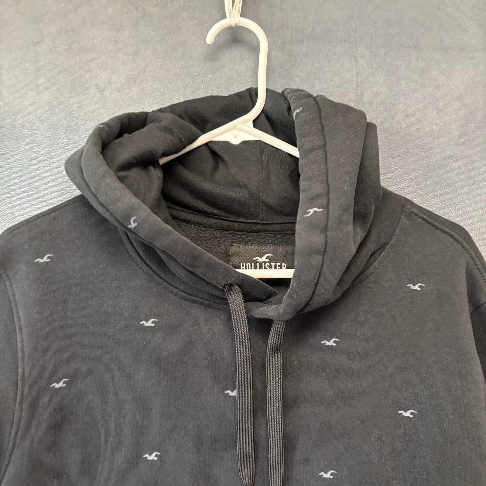 как выглядит Hollister Men s Hoodie Sweatshirt Black Logo Allover Print Pullover Medium Prep фото