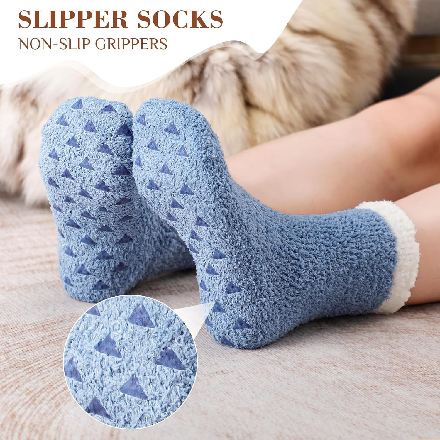Fuzzy Socks - 5 Pairs Slipper Socks for Women, Non Slip Warm Cozy Sock, Women's