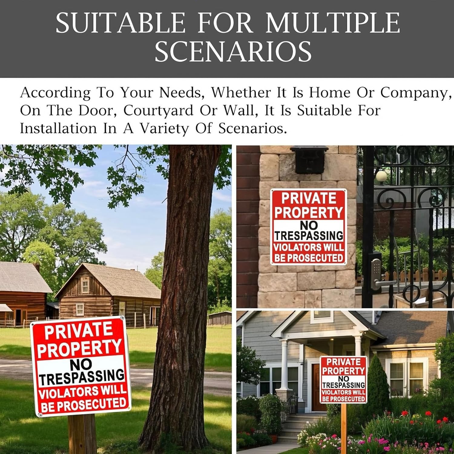 4 Pack Large No Trespassing Signs Private Property, 9.5 Inch X 9.5 Inch Private