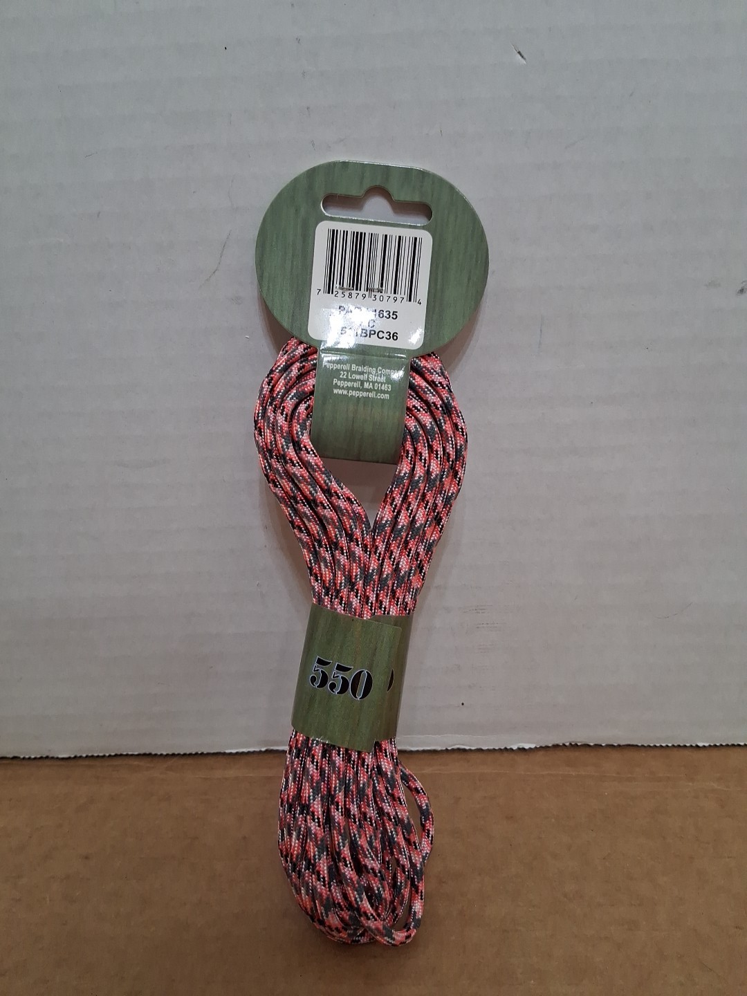 Pepperell Braiding Parachute Cord 550 - 16' - Pink Camo - CRAFT CORD, rock climb